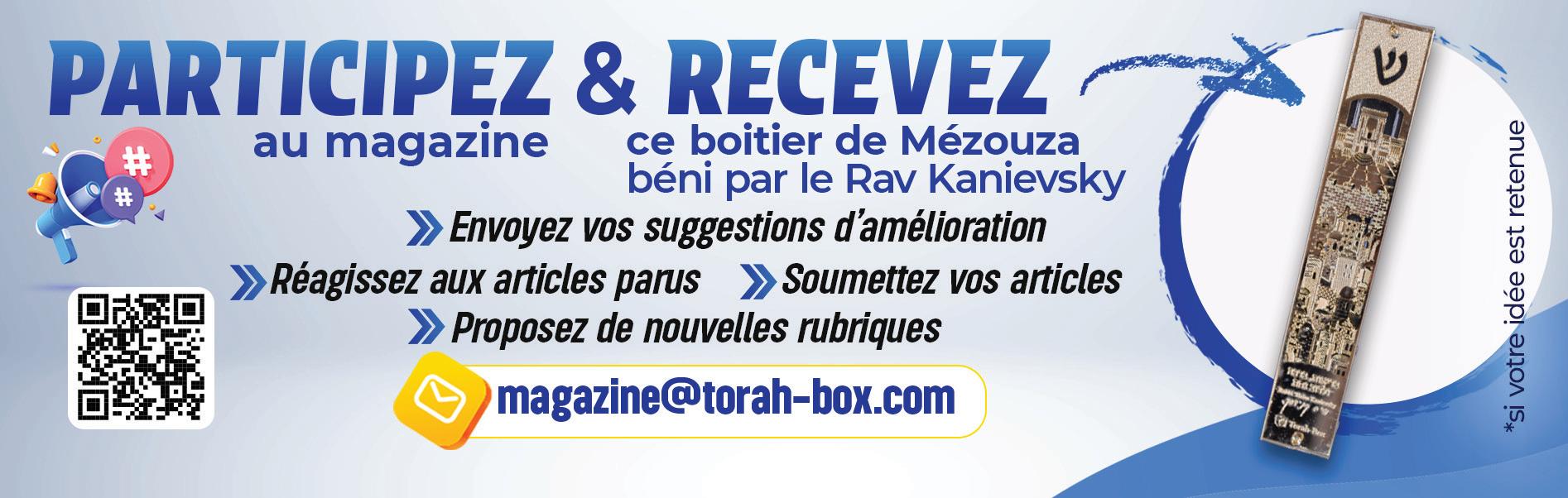 Publié sur le site Torah-Box vu par plus de 250.000 visiteurs chaque mois Magazine
