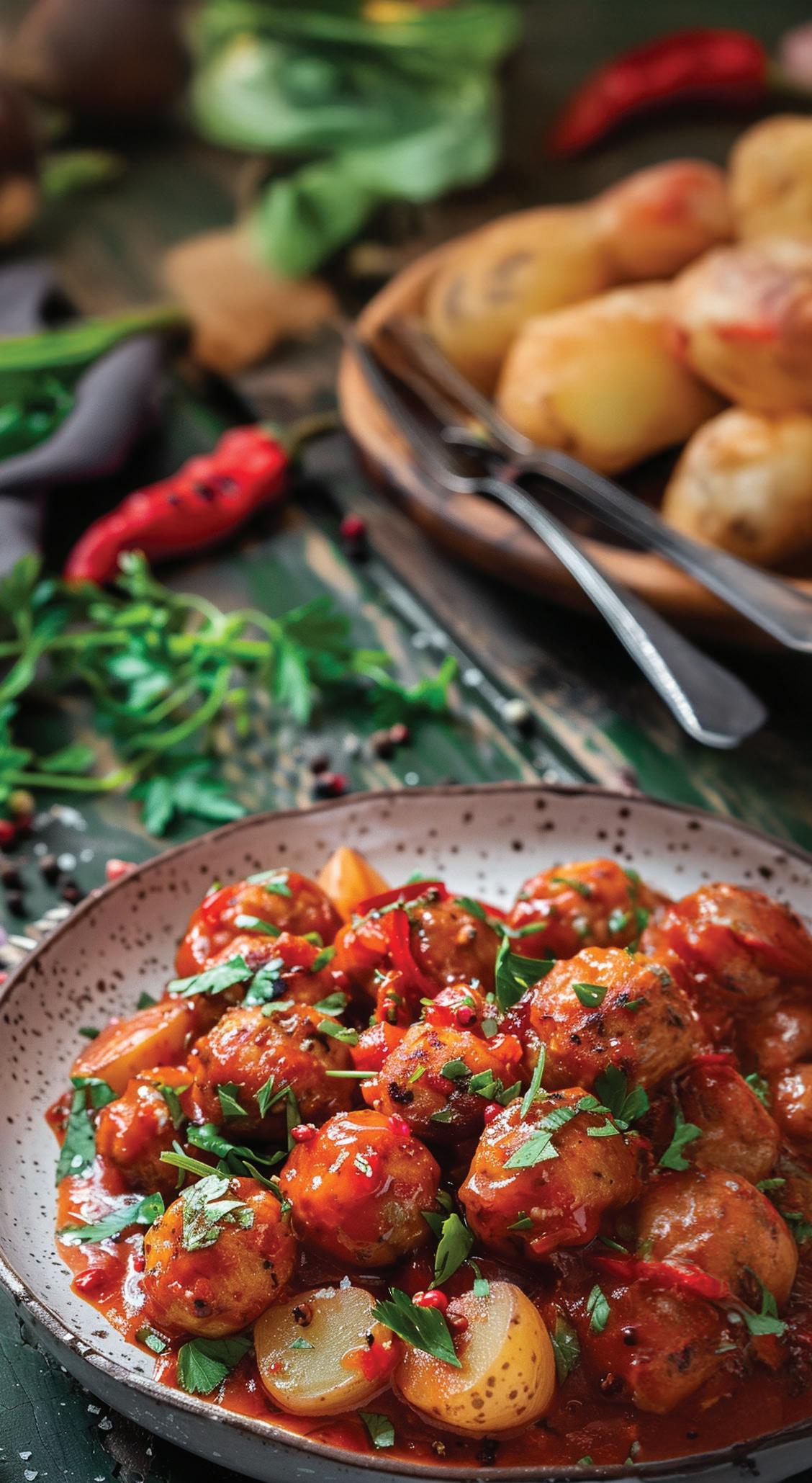 Voici une recette de boulettes de poisson et de pommes de terre cuites dans une sauce rouge épaisse, idéale pour votre table de Chabbath.