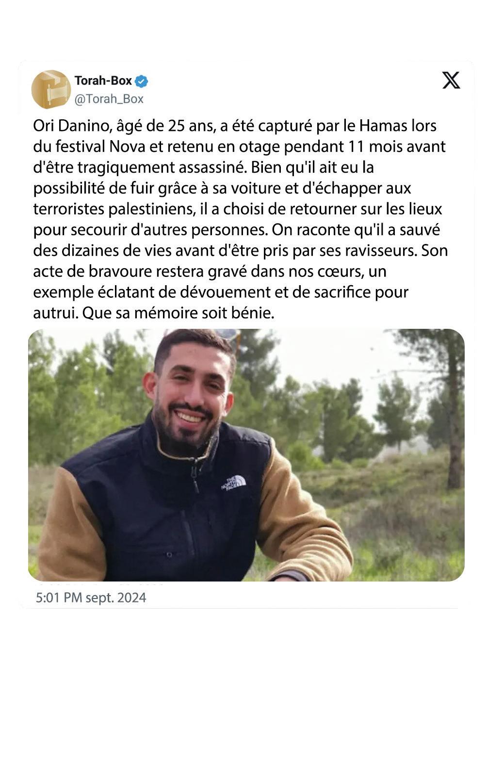 Betsalel Smotrich, ministre des Finances et membre du Cabinet de sécurité nationale, a déclaré que "Le cabinet n'acceptera pas un accord de capitulation qui mettrait en danger la sécurité d'Israël", après la découverte par Tsahal de 6 corps d'otages tués récemment. "Le 'Hamas a froidement assassiné nos otages dans le but de nous faire plier et d'accepter ses exigences. Leur