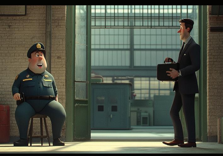 Mais le concierge est resté dans l’usine. Comme il est habitué à ce que l’homme le remercie chaque jour en partant, il s’étonne qu’il ne l’ait pas salué aujourd’hui. Il ne trouva pas cela normal et il décide donc de se mettre à sa recherche.