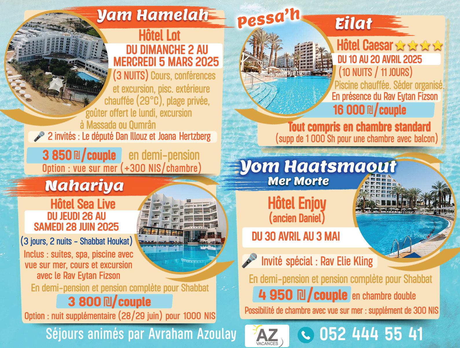 Rav Daniel Scemama, Alexandre Rosemblum, Elyssia Boukobza, Rony Hayot, Rav Yakov Sitruk, Léa Nabet, Rav Yehonathan Gefen, Rav Alain Weil, Rav Nathaniel Mimoun, Myriam H., Mia Atlan, Rav Gabriel Dayan, Rav Yigal Avraham, Rav Aharon Sabbah, Murielle Benainous