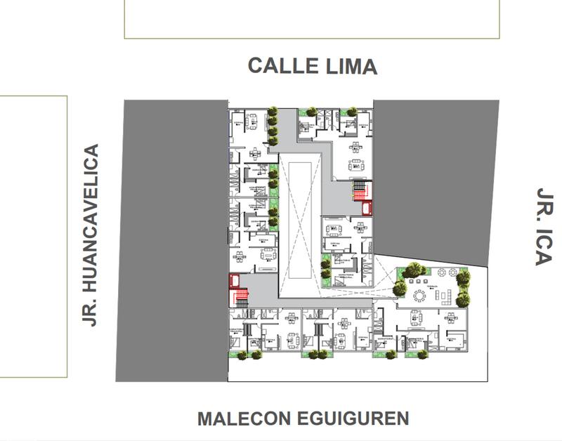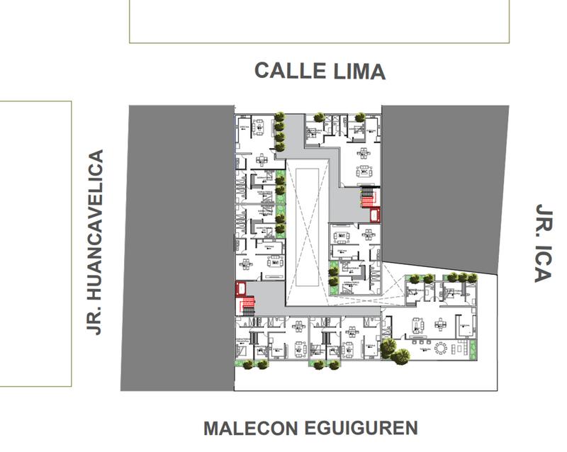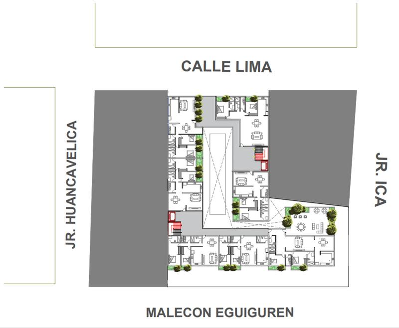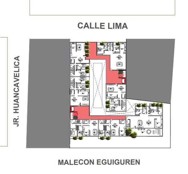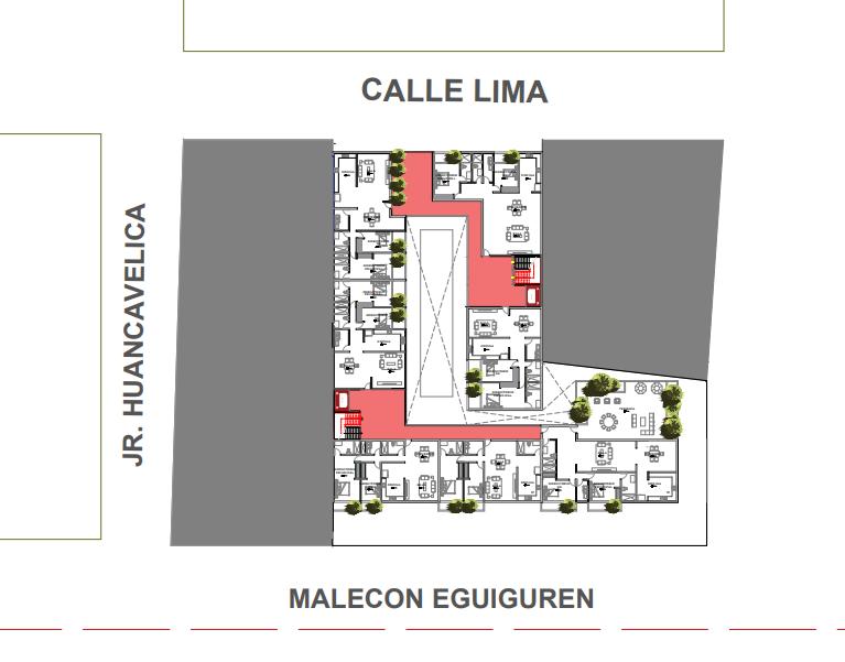 Cortinas de vegetación que permitirán mayor privacidad a la variedad de departamentos, brindando un aspecto ecológico.