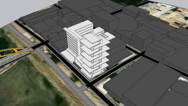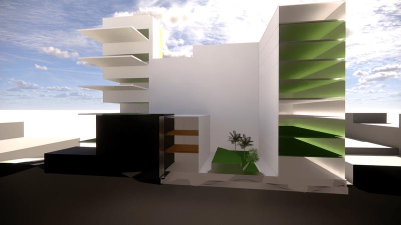 Sustracción volumétrica para generar visuales y ventilación de la edificación.