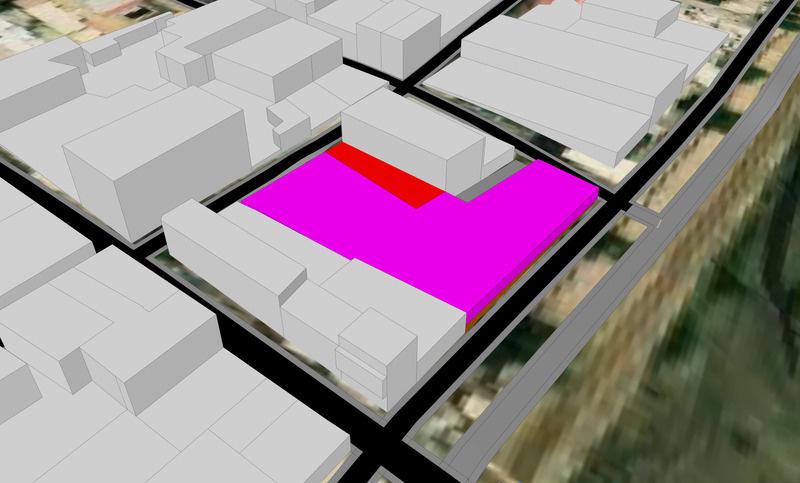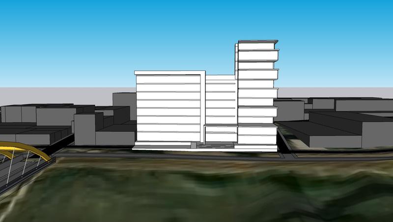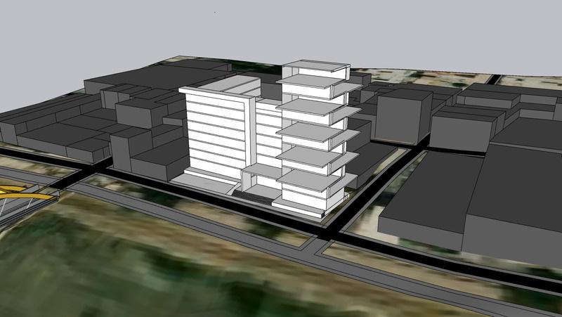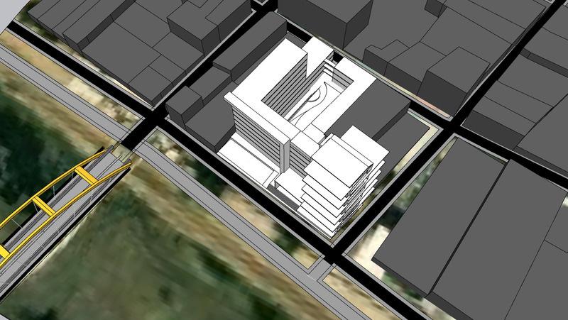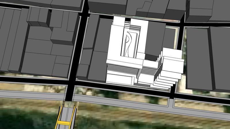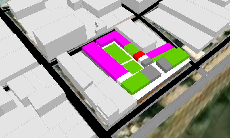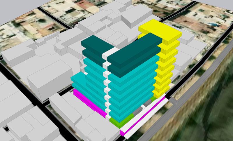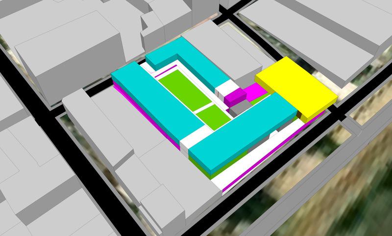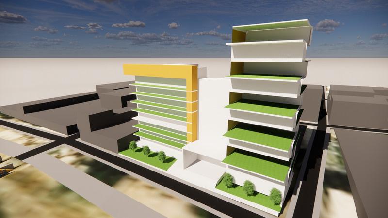 Se plantea dos volúmenes principales con características similares, en forma de L.