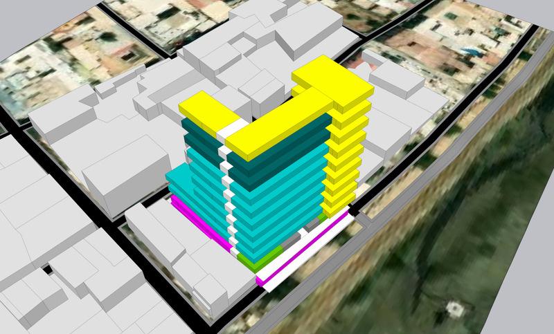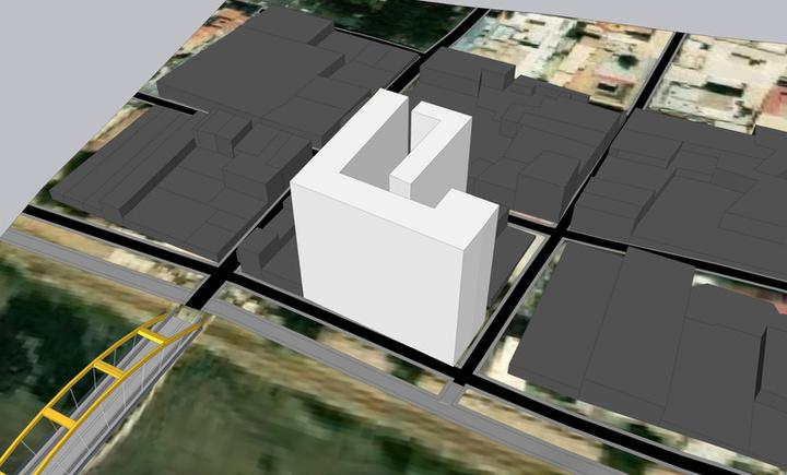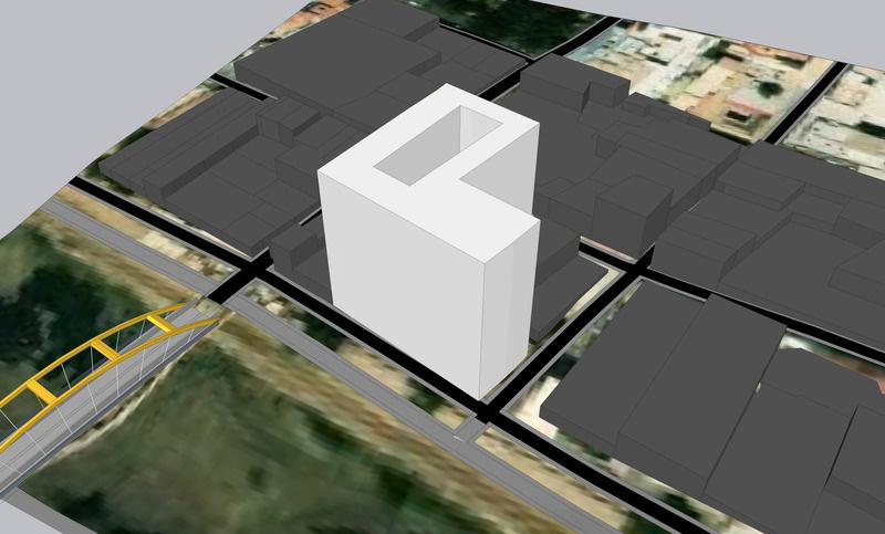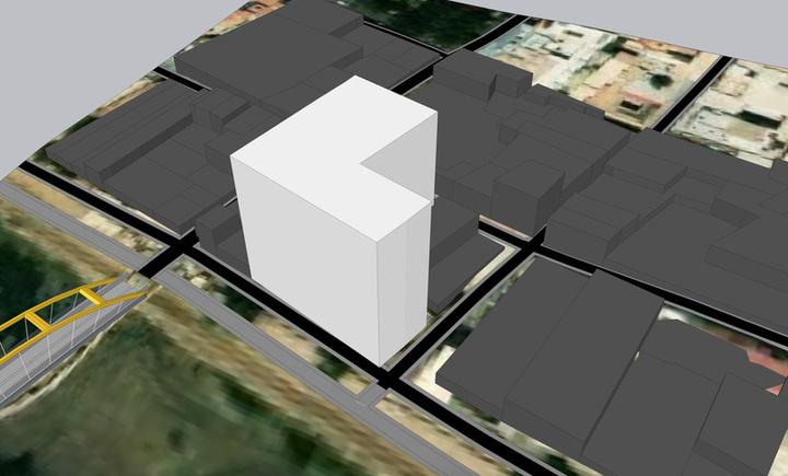 Volumen solido inicial ,emplanlantado en el terreno en forma de L.