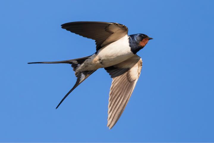 Es una ave pequeña que destaca por su brillante plumaje de color azul oscuro y su cola ahorquillada con plumas externas másalargadasquelasinternas.