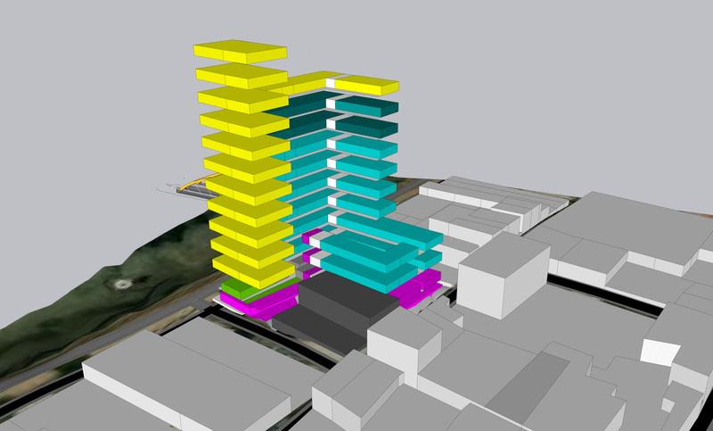 Sustracciones de volúmenes en forma consecutiva para generar terrazas y evitar solidez en la fachada.