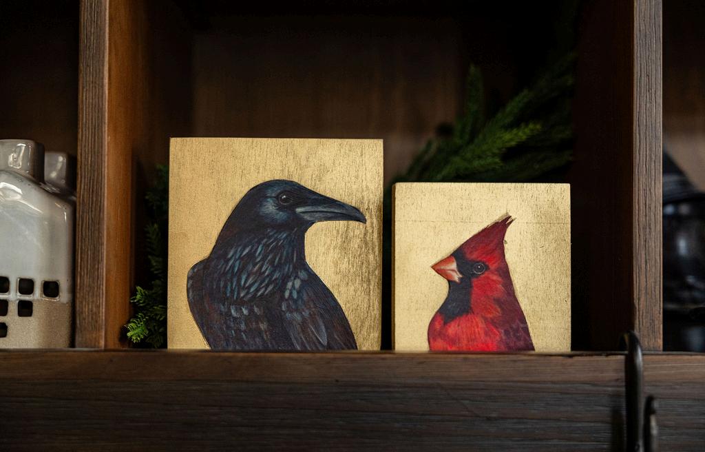 NovaScotia-basedartist JessicaConnorscreateda specialseriesof4x4mixed mediashelfartworks eachpieceismountedon solidwoodanddesignedto standfreely.