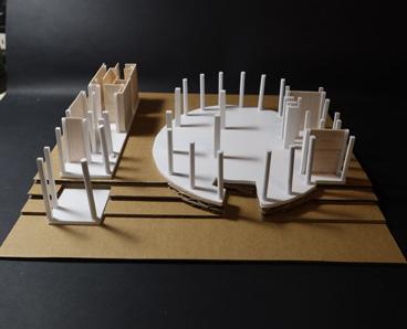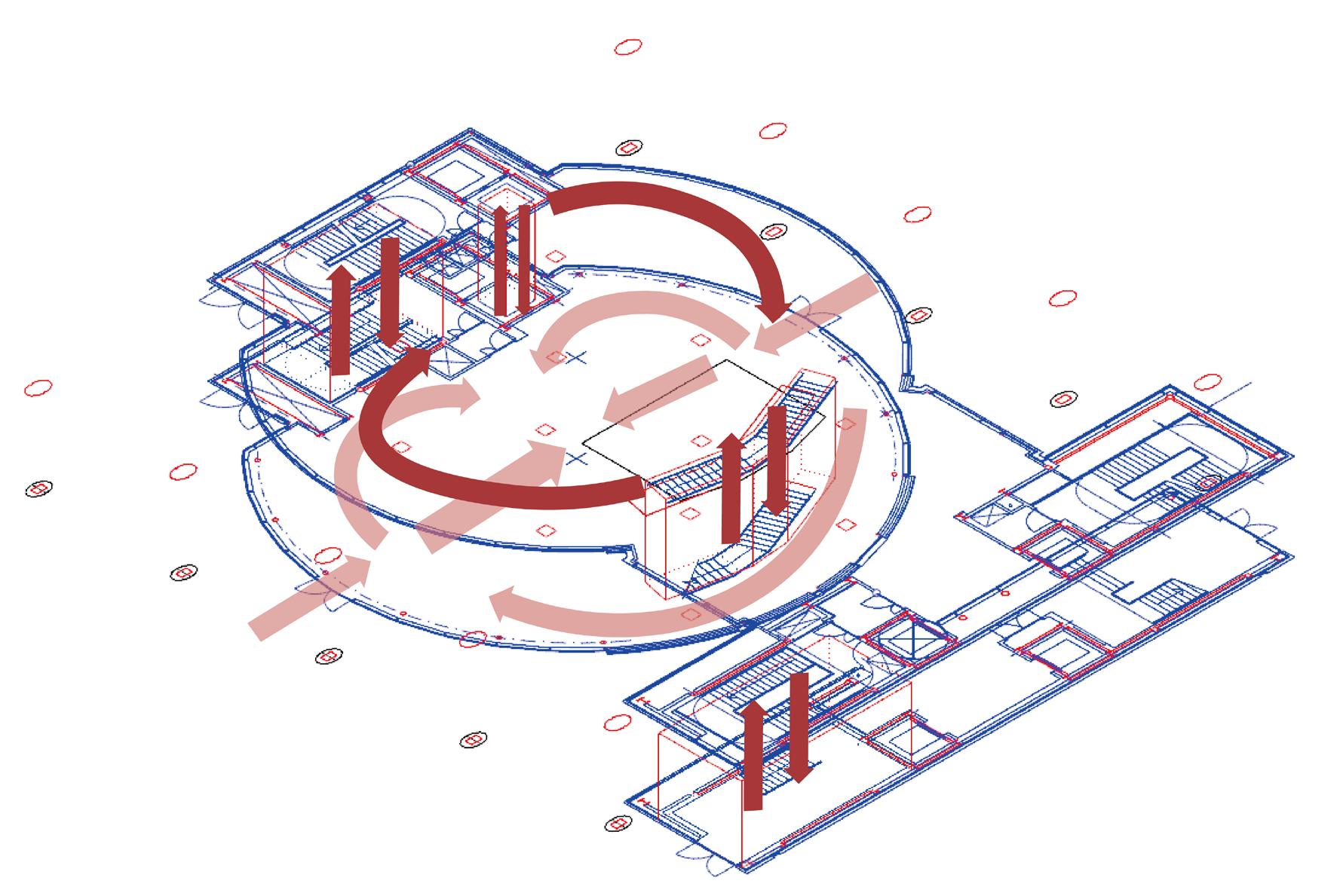 The idea of a spatial layout with to the previous drawing. Taking shape of the overall building space to change gradually from centre.