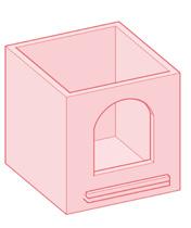 The downward-facing arches form the display area for fruits and vegetables. The middle area is used for vegetables such as potatoes and onions. The bottom of the shelf is designed to hold wooden storage boxes.