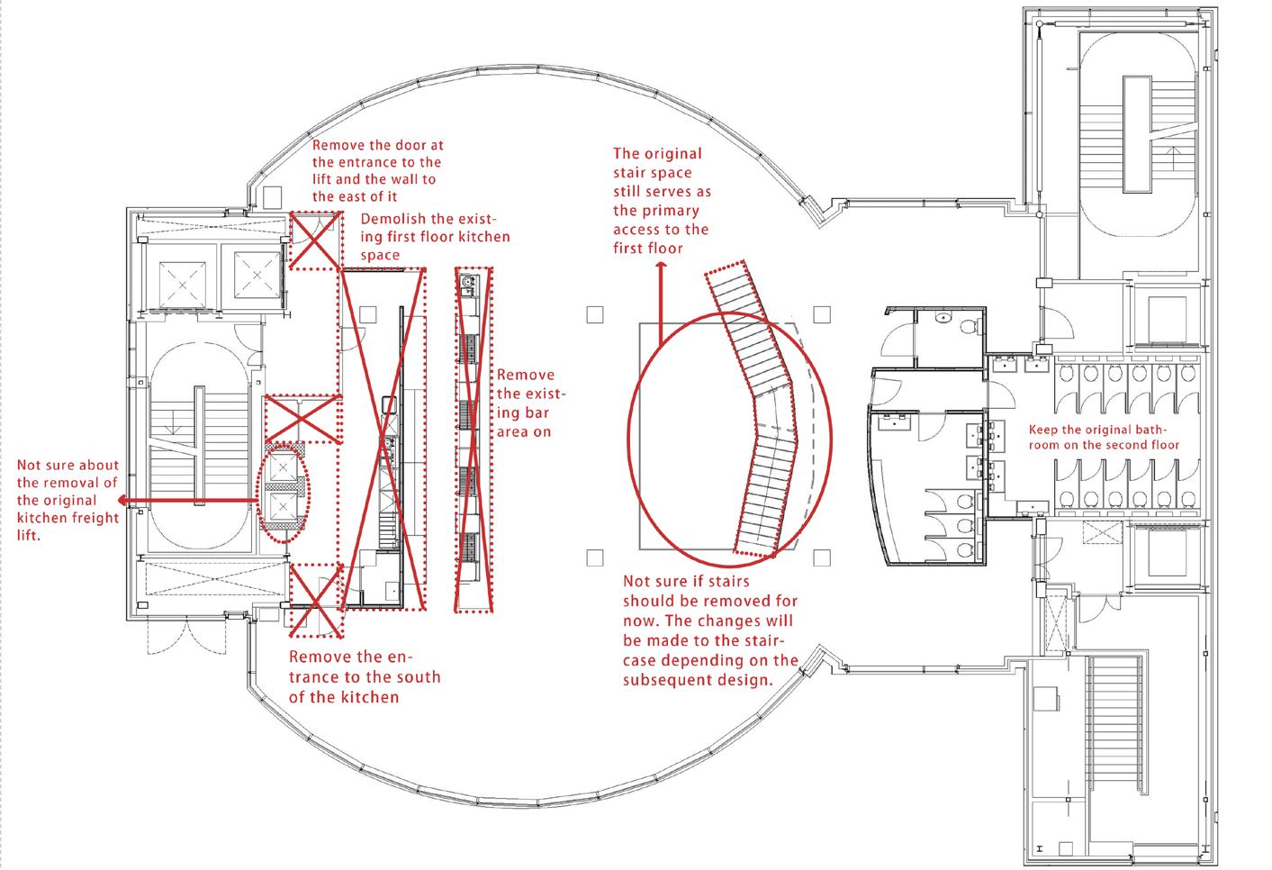 kitchen space with the dining circulation changes, with people towards the centre of the desire for my project to promote