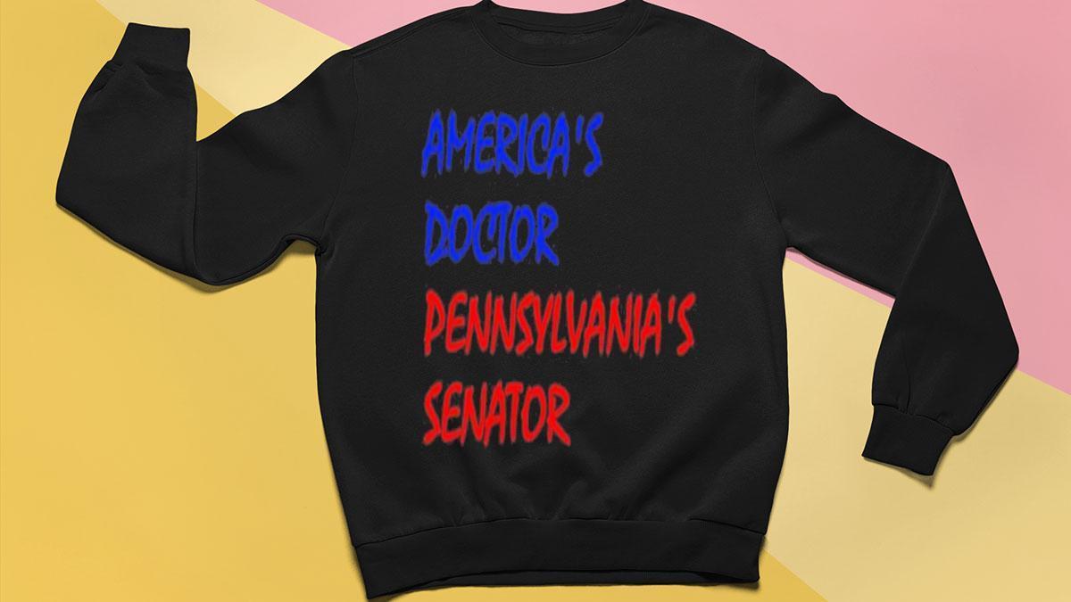 - High-quality custom-printed t-shirt featuring "America's Doctor Pennsylvania's Senator" design