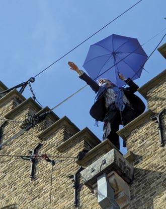 La performance la vede lanciata in aria, afferrare un trapezio con le mani, agganciarsi alla barra con le caviglie per poi lasciarsi cadere nel vuoto a testa in giù ed atterrare in una rete di sicurezza.