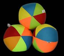 3 Cilindros de 8x6 de diámetro, 2 prismas de 12x6 cmts., 2 cuñas de 12x8 cmts., 2 triángulos de 8x6 cmts y un rectángulo de 12x6. Fabricados en jersey de seda estampada, con plantas para libre asociación.