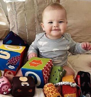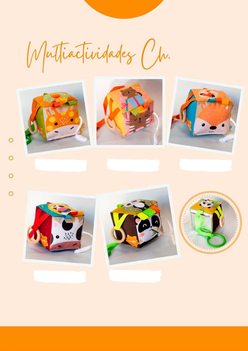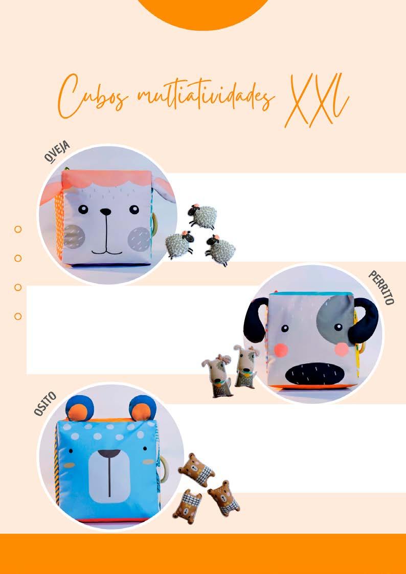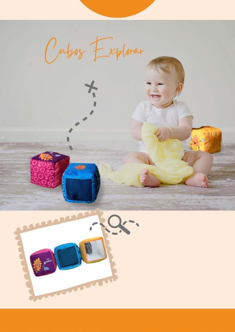 3 Cubos de 10x10x10 cmts, con actividades para explorar, enseñanzas con figuras estampadas, rellenos de vellon siliconado con un sonido, espejado, bolsillo y red.