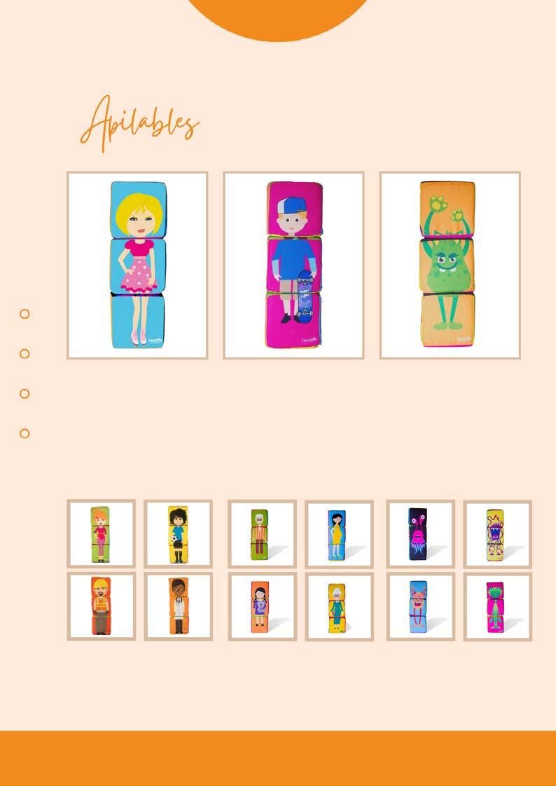 3 Cubos de 8 cmts. con 6 rompecabezas para armar, fabricados en tela jersey de seda estampada personajes de diferentes razas y profesiones, gestos en las caras.