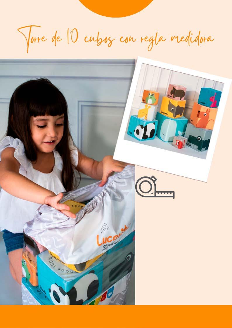 Torre de 10 cubos blandos decrecientes de animales, armada tiene una altura de 1.06mt, podes medir tu crecimiento mientras te divertis jugando.