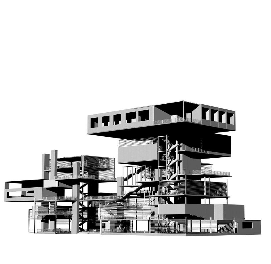 to show visual connection in the transitional spaces and the play in levels: