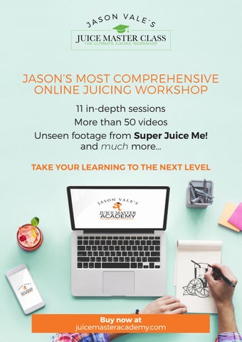 JASON’S MOST COMPREHENSIVE ONLINE JUICING WORKSHOP 11 in-depth sessions More than 50 videos Unseen footage from Super Juice Me! and much more... TAKE YOUR LEARNING TO THE NEXT LEVEL