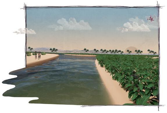 Traditionally, mulberry tree fish-farm systems have been located in China and Japan. The system works in a closed loop system to reuse waste and produce products such as, mulberries, fish, and silk. Various other poducts are then sent to neighboring industries in the eco-industial park suck as the silk to crafts and produce to food processing. The fish ponds saturate and fertilize the soil of the nearby mulberry trees. Due to the variety of fish and mulberry trees species that can possibly work within the system, an application of the system in the Fata Burnu village in Darfur is plausible. The shapes of the ponds derrived from the parks shared parti lines spreading across the village. The trees then wrap around the ponds and neighboring industries.