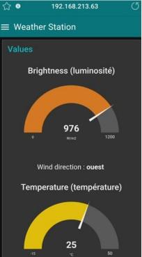 Aperçu de l’interface utilisateur avec les données de chaque capteur de la station météo