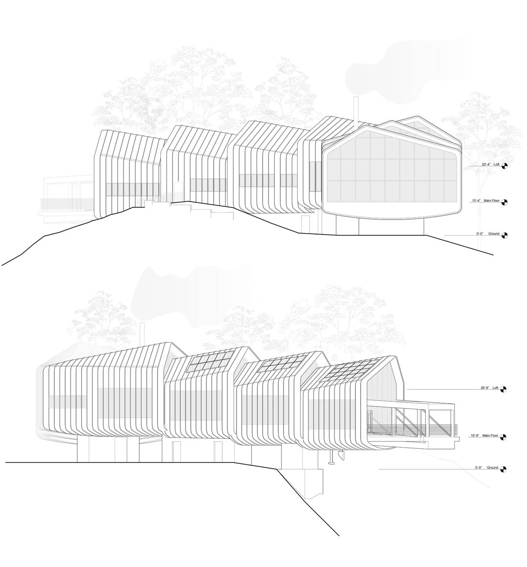 The John Muir Center is a proposal to house the prompt’s Mount Shasta Archives and Education Center - an extension of the existing archives at the College of the Siskiyous in Weed, California. The prompt gave a specific location for redevelopment on the college campus, as well as exact size requirements for archive, classroom, display and laboratory space.