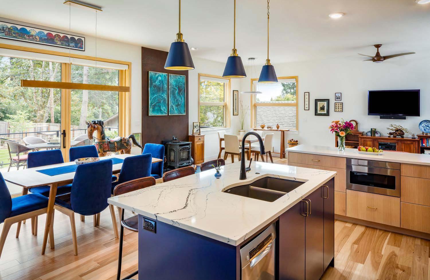 This is a transformative remodel from a modest ranch house to an environmentally-focused “forever home”.