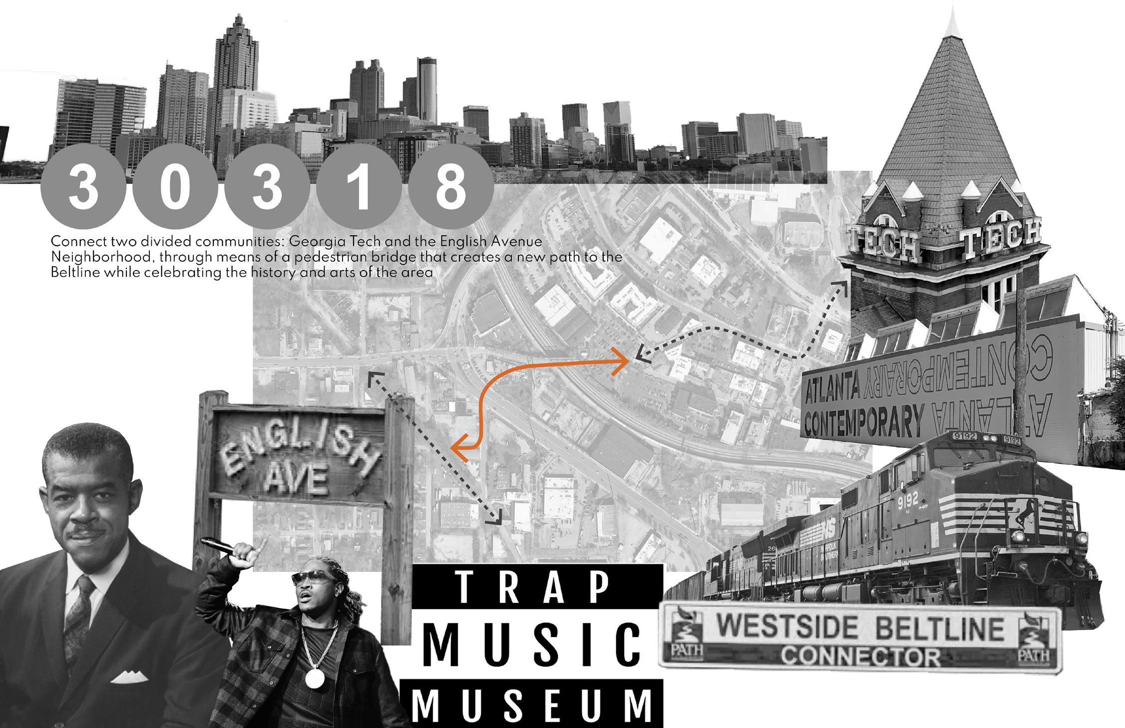 Atlanta’s Trap Music Museum and Bankhead Avenue Bridge are transformed into one united project, where a new Bankhead Bridge Plus spans over railroad tracks and Northside Drive to connect the museum and English Avenue community with Georgia Tech.