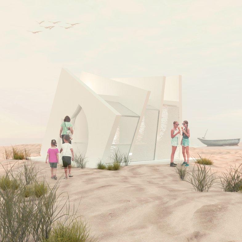 Project was designed based on contrast between compositional principles - complexity and simplicity. The idea was to combine those two and create one form with a function of a beach bar.