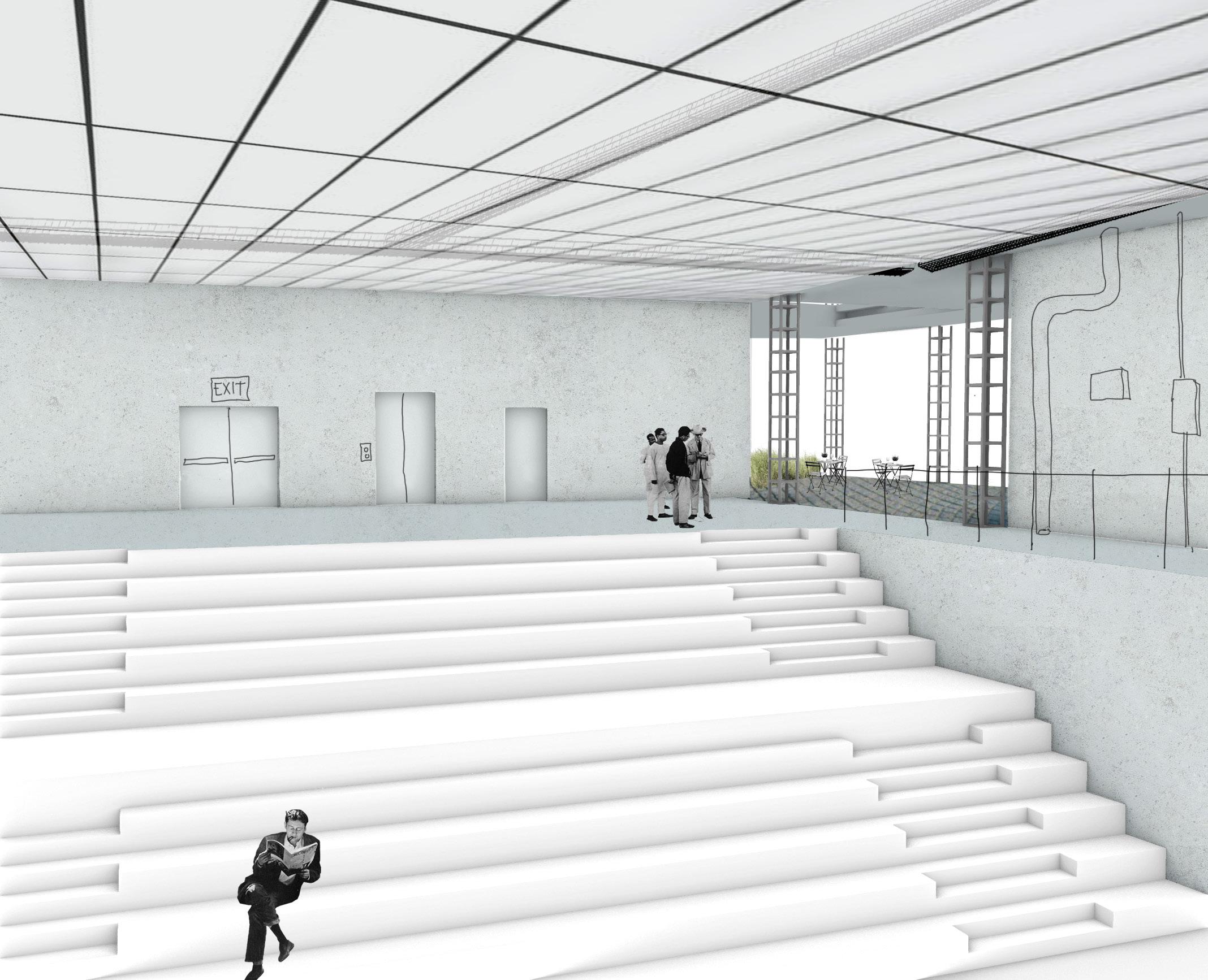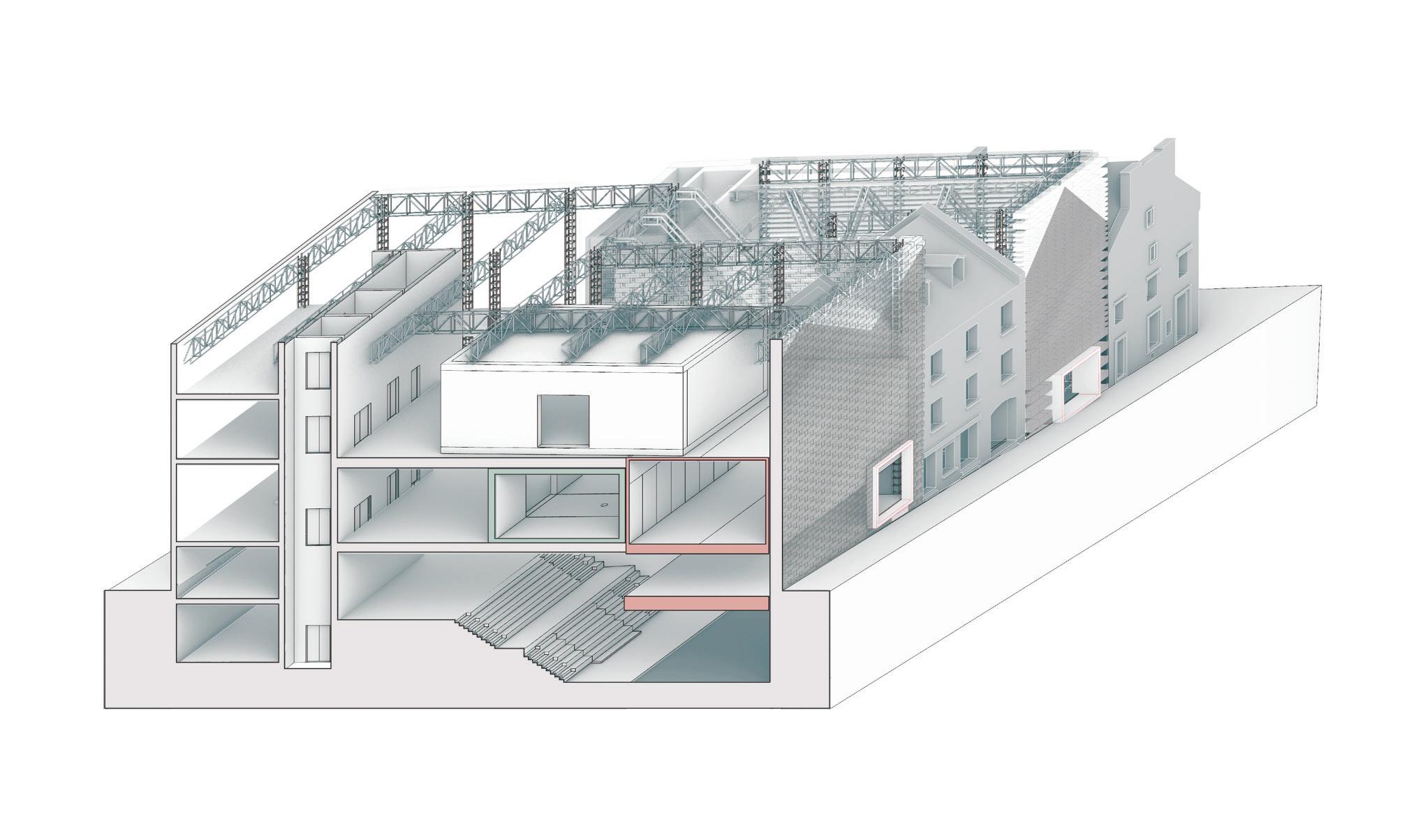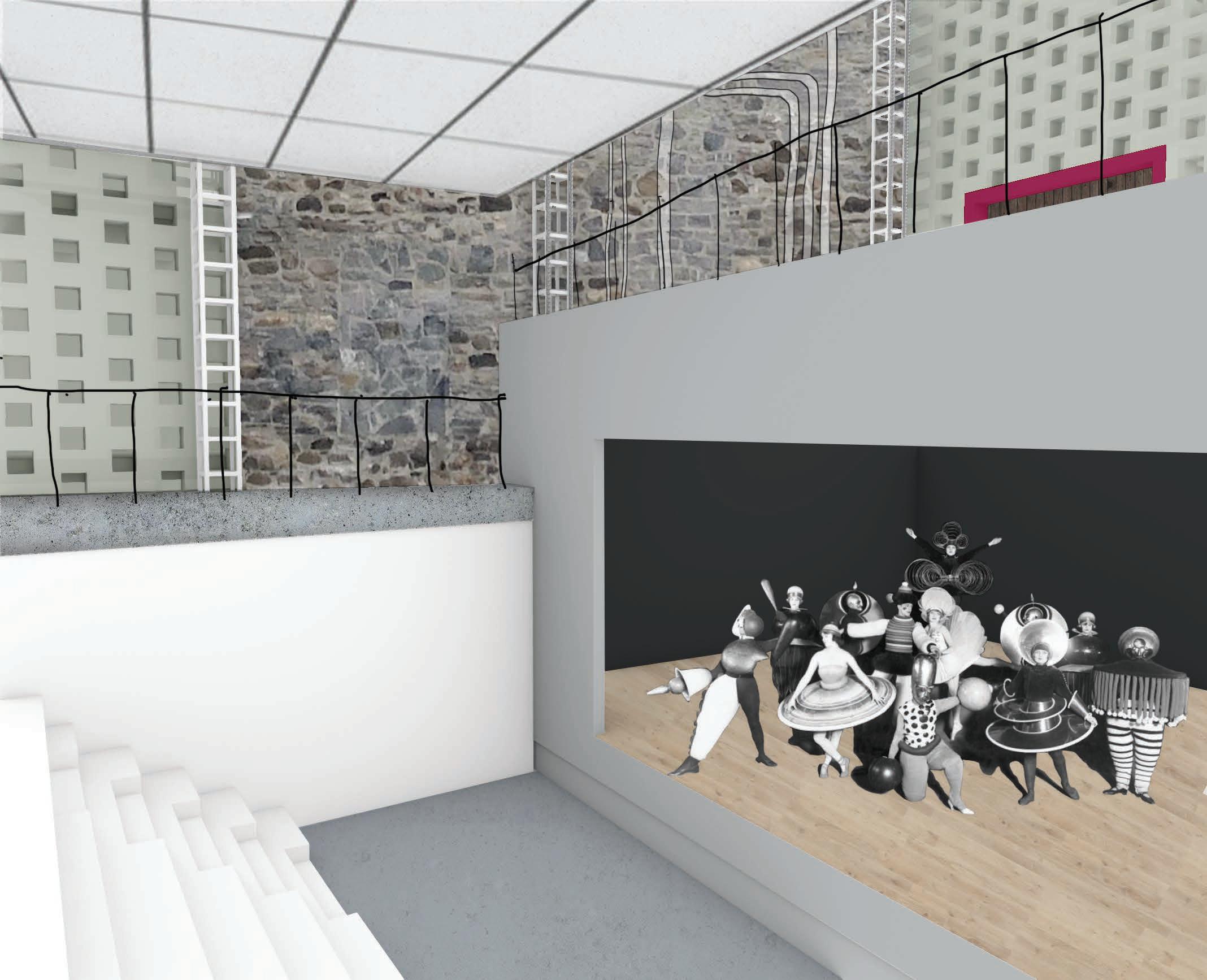 perspective: elevating theatre up for exhibition or performance space.