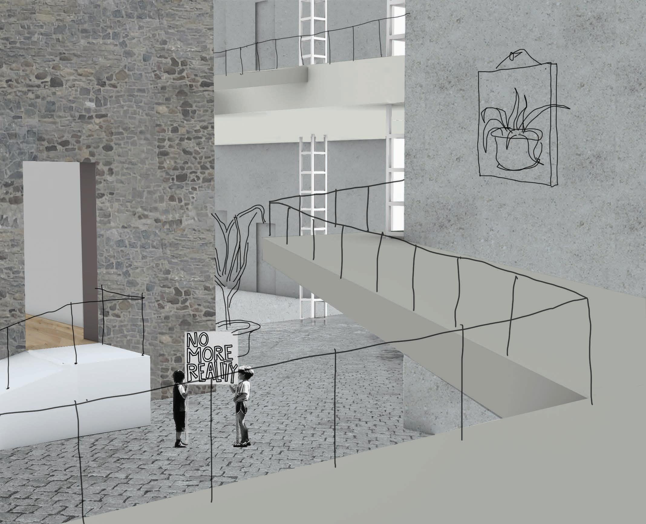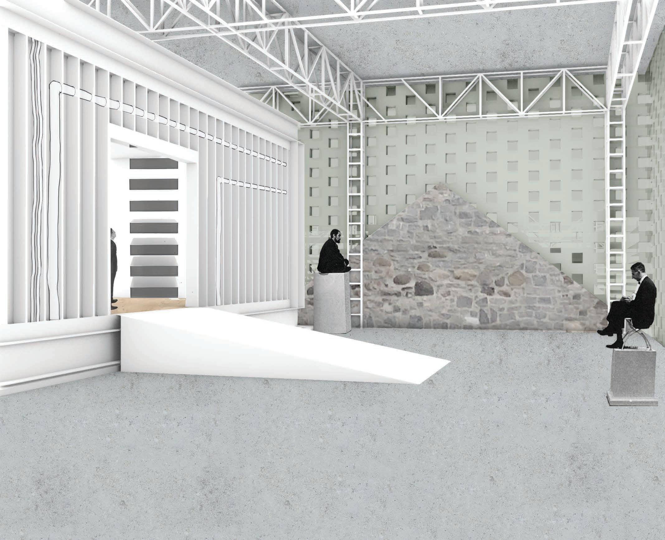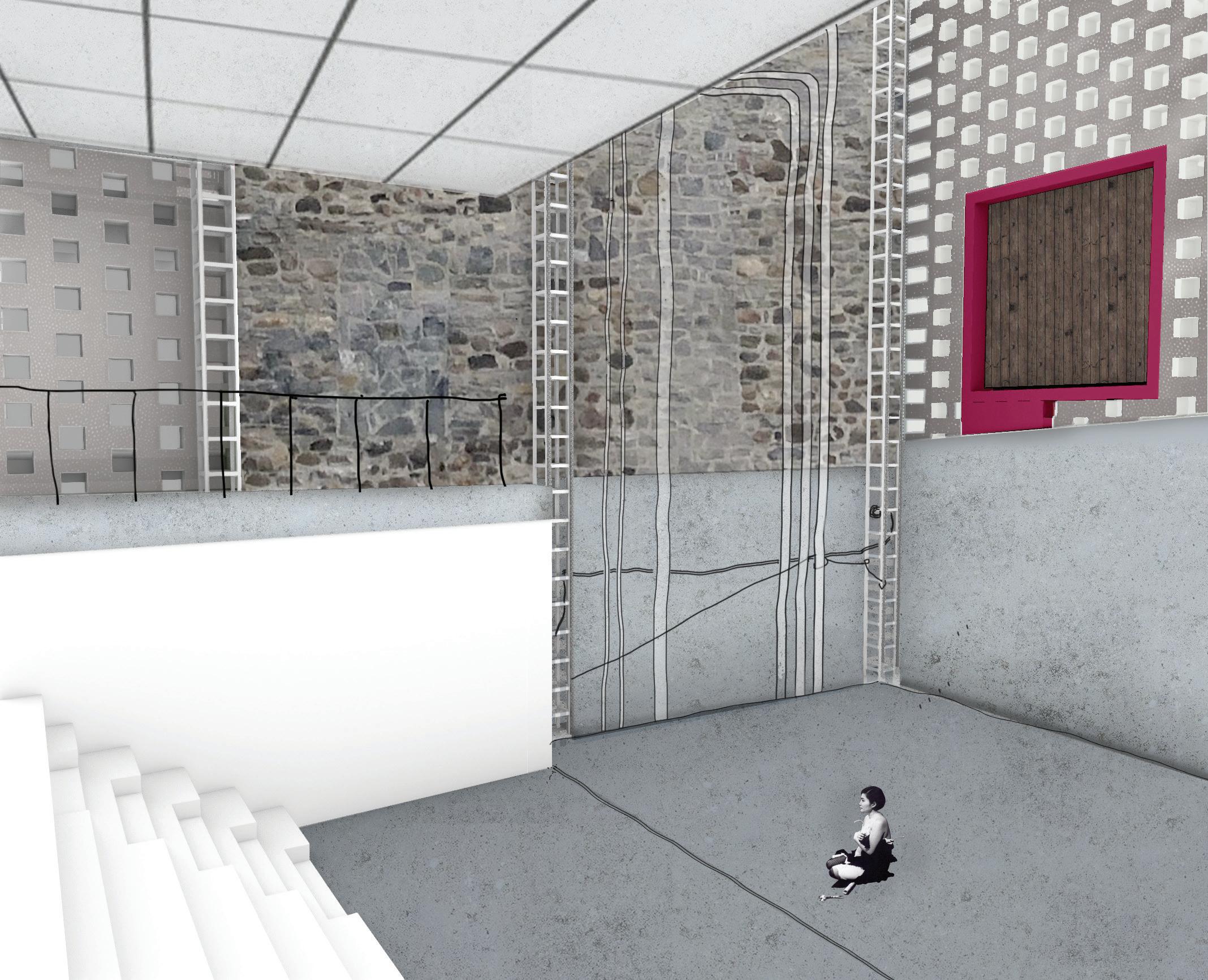 perspective: elevating theatre up for exhibition or performance space.