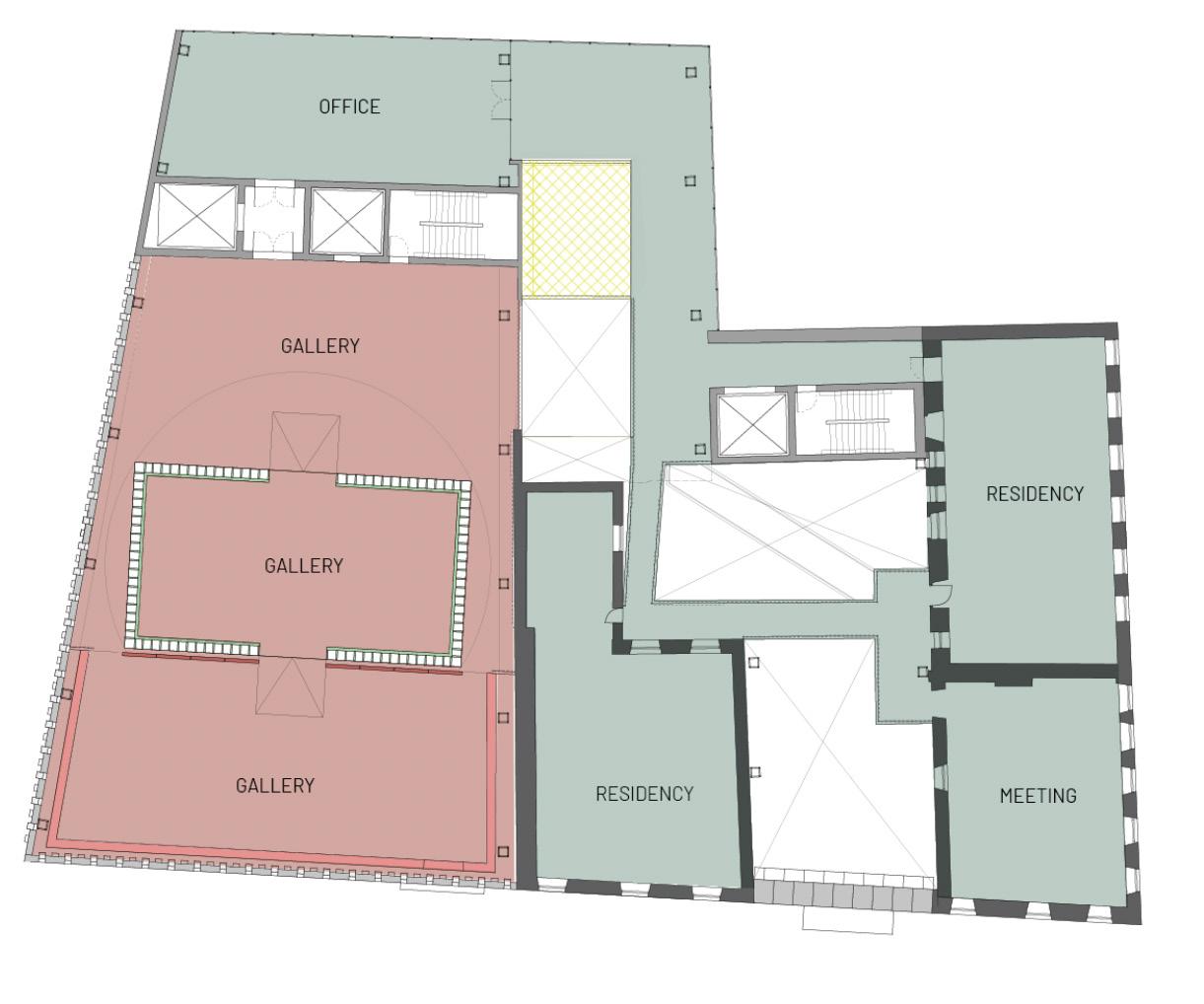 GALLERY # 1 GALLERY # 2 STAIR THEATER BOUTIQUE RESIDENCY RESIDENCY WINTER GARDEN KITCHEN MEETING SPACE CAFE