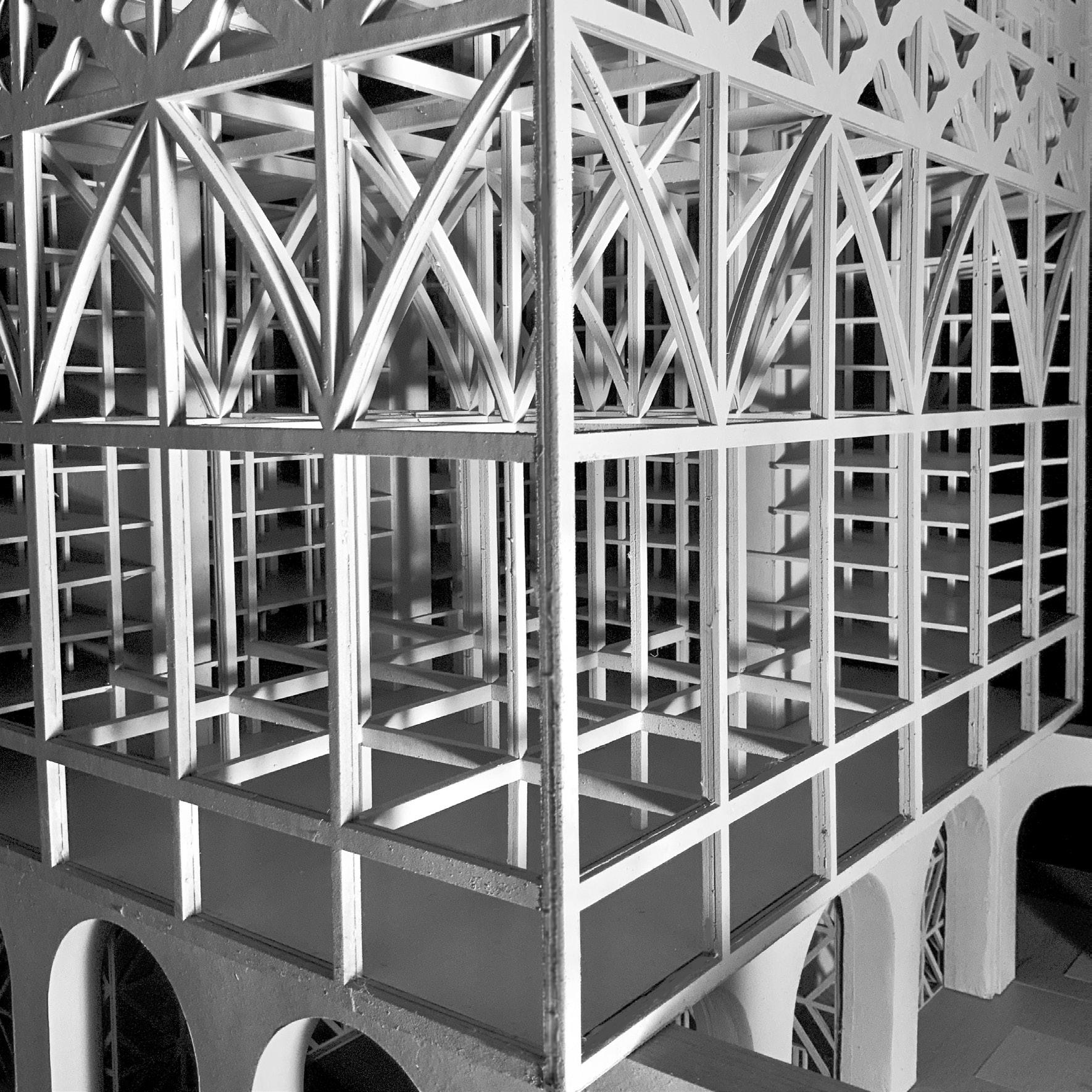 left: model photo, south view. above: model detail, first atrium.