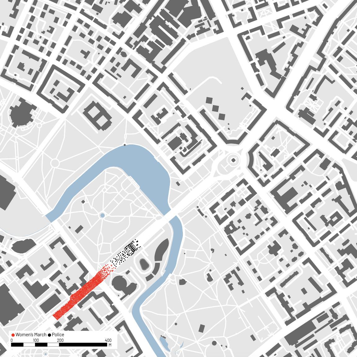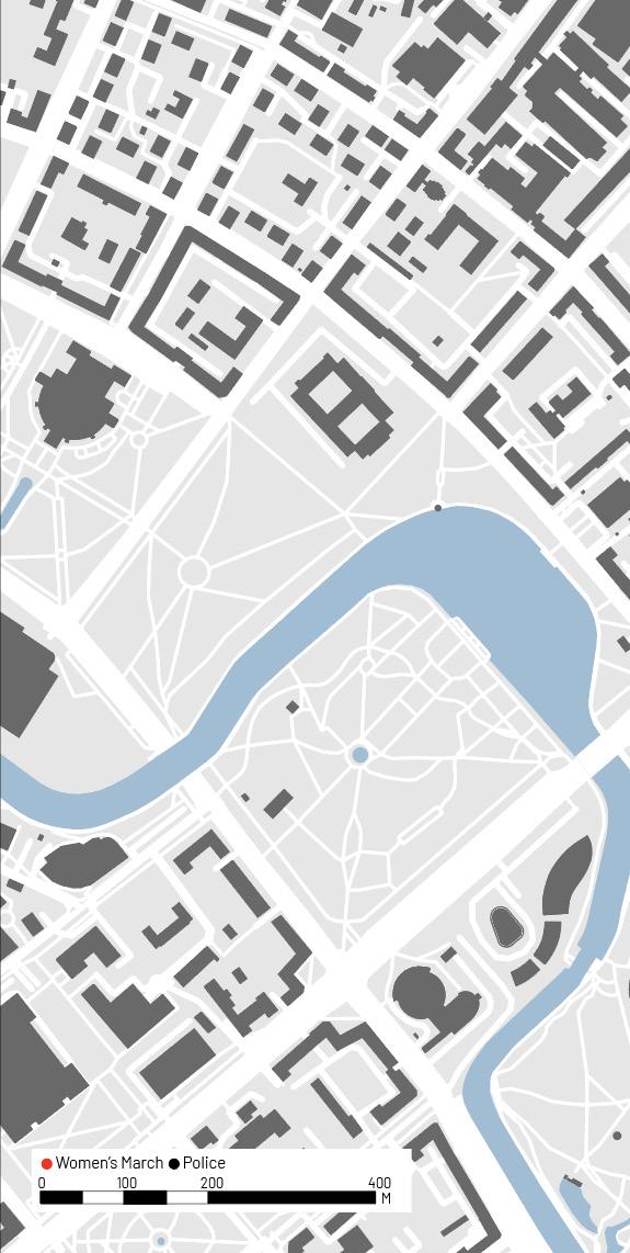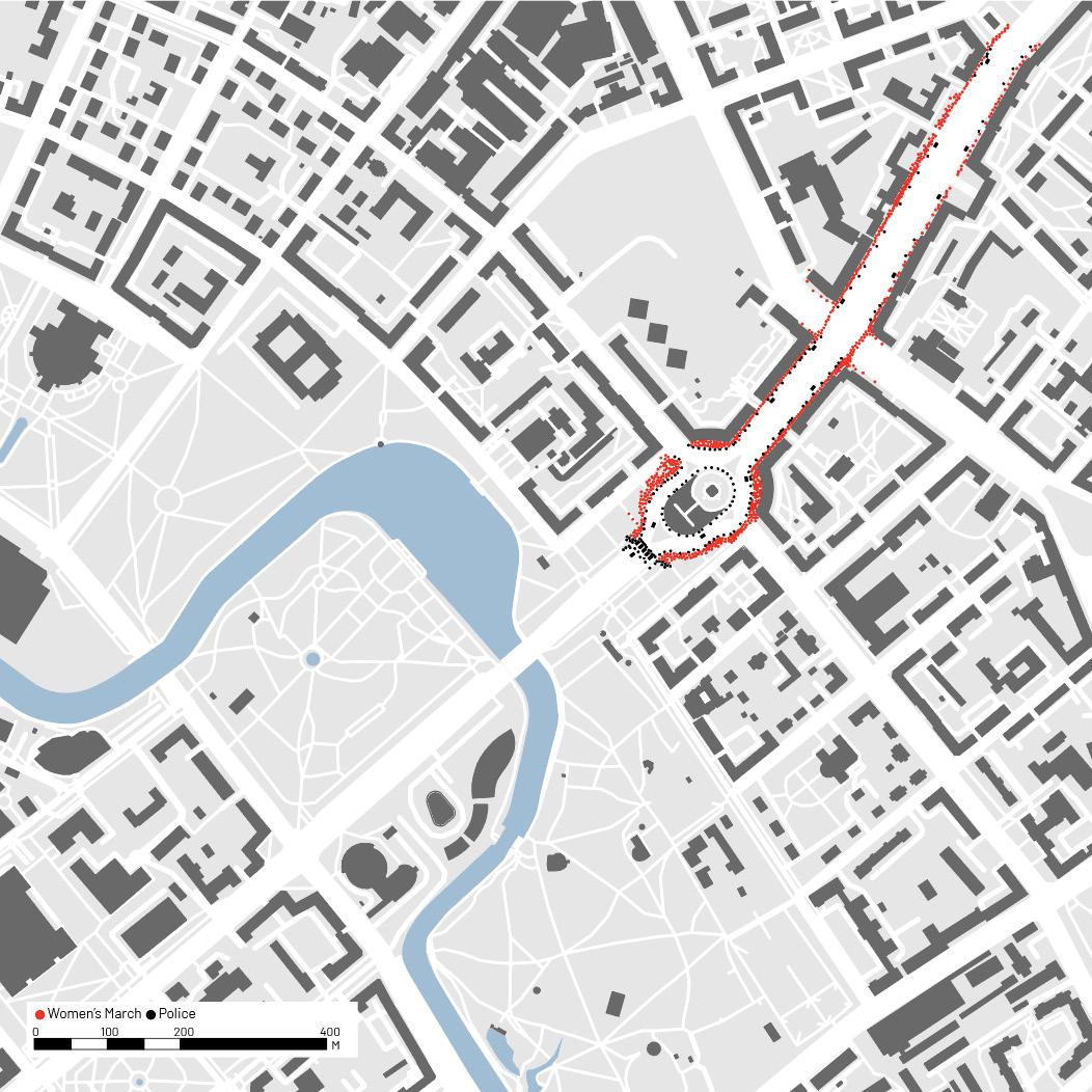 The events on August 29th began early contained to sidewalks by police lines. thousand to fifteen thousand, the police the march and the women effectively crossed took over Independence Ave. The crowd their way through the police lines. The sequential maps done over 90 minutes, protest when it was largely controlled the protest had grown in size and began Victory Square, and lastly, at 19:00 when and taken over the streets, beyond the police trailing.