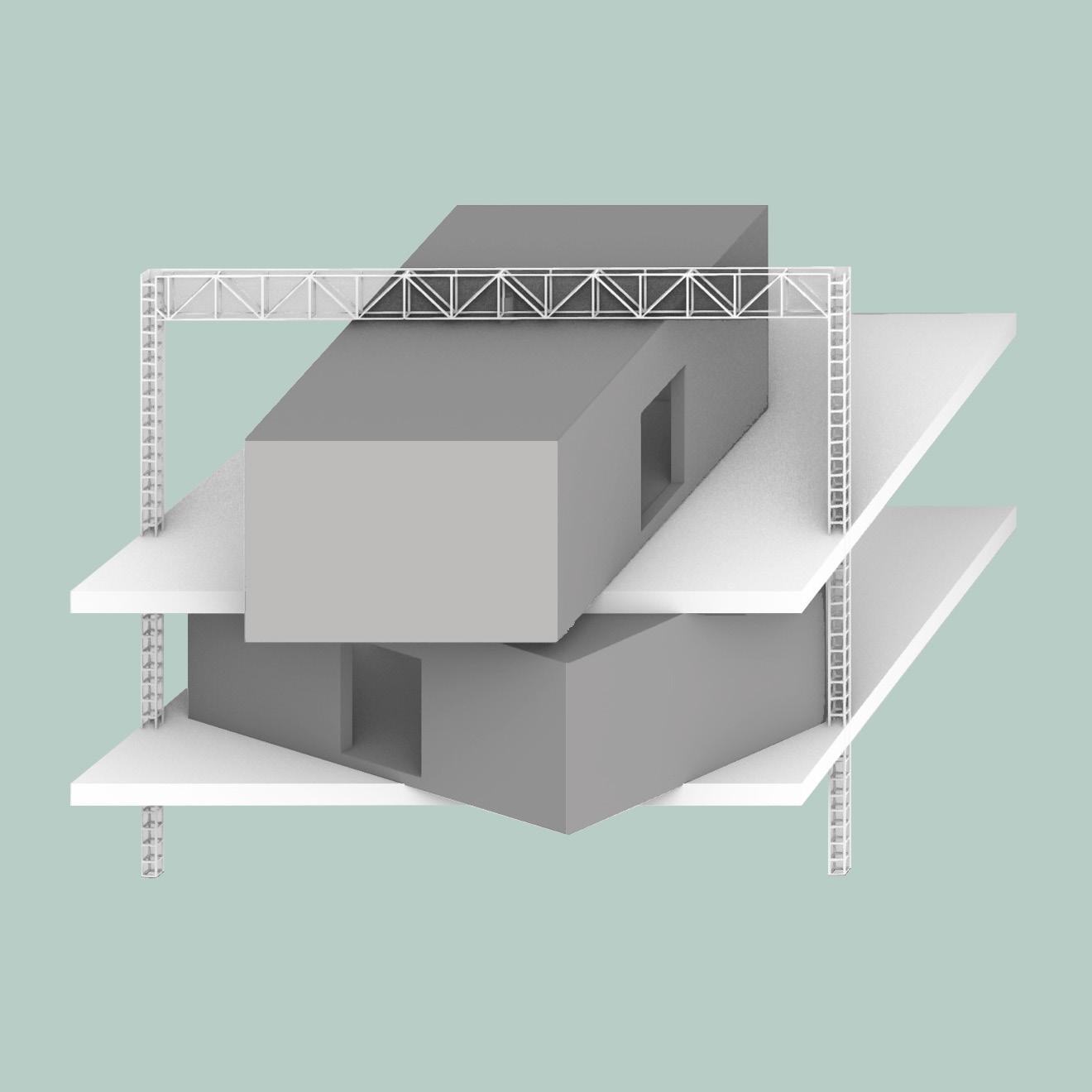 This house seeks to eliminate the dualism and differences between two separate units while avoiding two identical homes. The two homes are similar to each other; there are traces of the objects, furniture, and ways of living of one house on the other. They reflect and intersect each other, but they never interfere.
