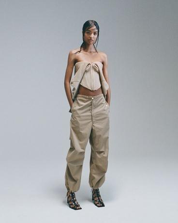 Popular nos anos 2000s a calça cargo volta com tudo nas passarelas e nas lojas de varejo. Também conhecida como calça de carpinteiro a peça por em si nos remete a atividades ao ar livre, pelos seus inúmeros bolsos e pela sua modelagem que preza a funcionalidade e a durabilidade assim ela é feita para aguentar o que der e vier. No começo da tendência, nos vimos réplicas de peças já existentes, porém agora e para as próximas temporadas é esperado vermos outras iterações da calça, incluindo versões com tecidos que não esperaríamos ver nessa modelagem.