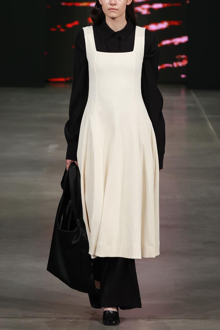 O pinafore dress, que, originalmente era usado como um avental, se tornou uma peça clássica do estilo preppy. É uma que sempre atendeu ao público feminino jovem, é vestido como sobreposição e pode ser encontrado em diferentes comprimentos. A pegada nova dessa peça é a assimetria e experimentações com sua modelagem clássica. A ideia é criar uma cara nova, num estilo subversivo que atende um novo público, inclusive, a quem procura uma peça agênero e confortável.