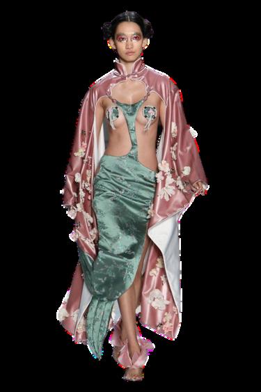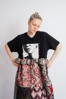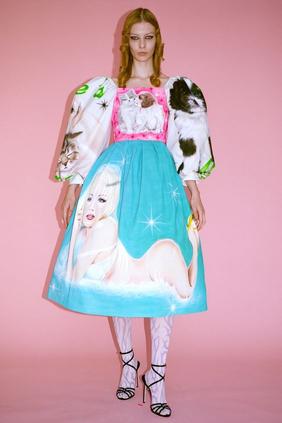 Estampas localizadas que remetem o grafite, que trazem de volta a estética dos anos 90 e 2000, muito vista no streetwear e em espaços de Hip Hop, agora podem ser encontradas em coleções mais ‘delicadas’ em peças que não foram vistas nesse nicho. Ashley Williams em sua coleção de Outono 2021 nos deu uma ideia do que vem por aí no mundo da moda: O contraste de peças femininas clássicas, com estampas localizadas (e às vezes até corridas) que trazem uma cara mais descontraída. Essa aposta representa bem a cara nova do punk as imagens são livres de regras, o uso de mixed media é um bônus que remete a cultura DIY que também faz referência a nova era digital