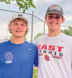 Channing and Bridger played in a Cherry Creek High School vs. East High School varsity tennis match. Although they didn’t play a match against each other they ere e cited to catch up ith one another at the end o the day
