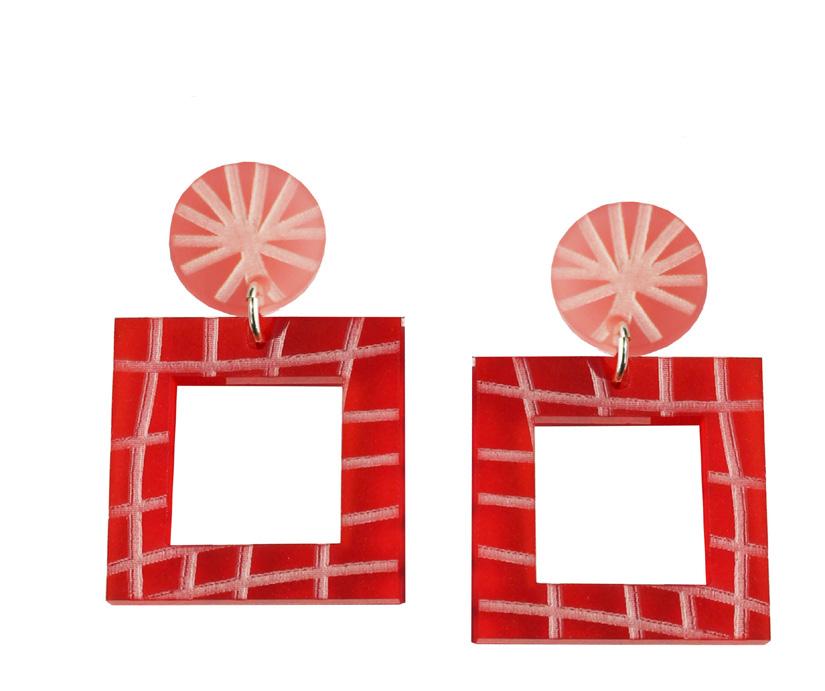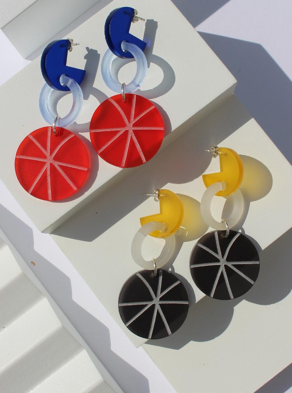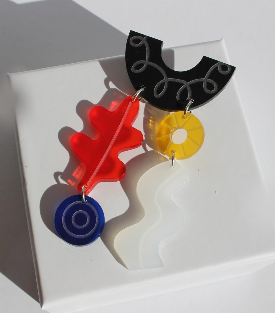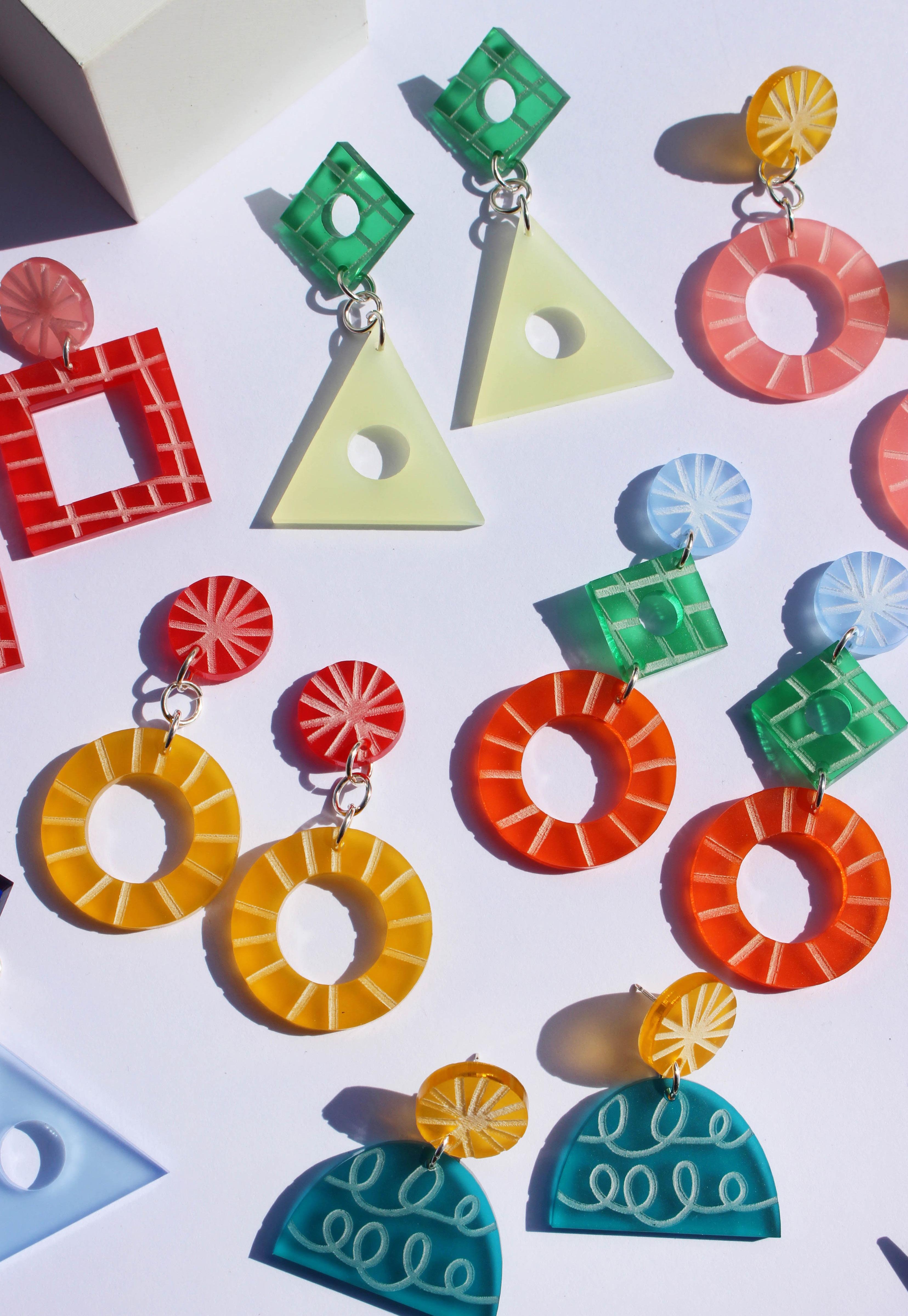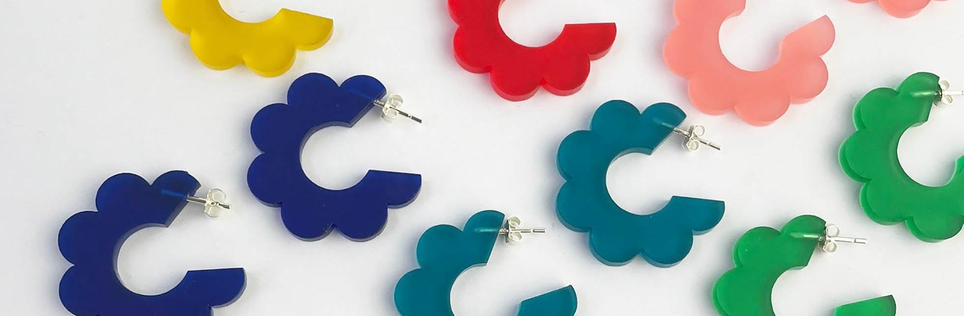All jewellery is made in house by me and a small ad hoc team using a laser cutter & traditional jewellery techniques. My designs use a mix of graphic & artistic elements with bold or on-trend colours, and patterned & textured elements, in the aim to create irresistibly eye-catching designs.