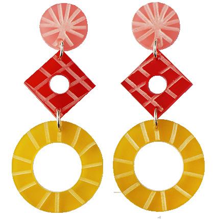 Curve Earring -Yellow, Marshmallow Pink, Teal