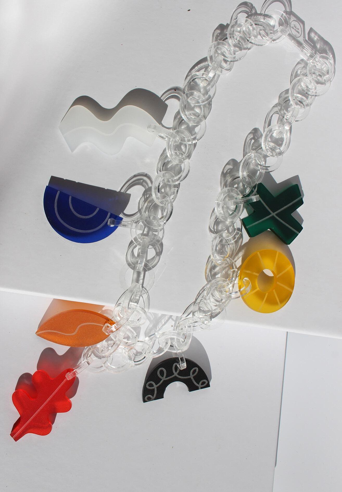 Matt shades of frosted acrylic in contemporary colours. With infIuences from abstract art and architectural forms.The pieces are a celebration of shape, form & texture.
