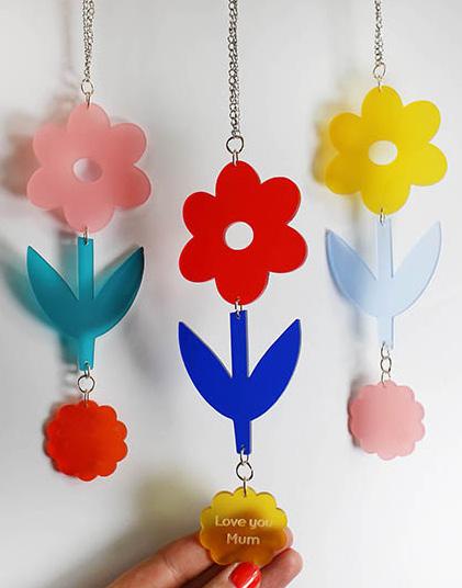 Six Flowers approx 16 x 4cm Laser Cut Acrylic. Multi- Use