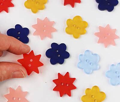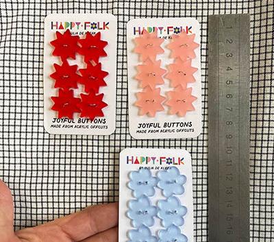 Colourful buttons created from acrylic offcuts from my jewellery and cake topper collections.