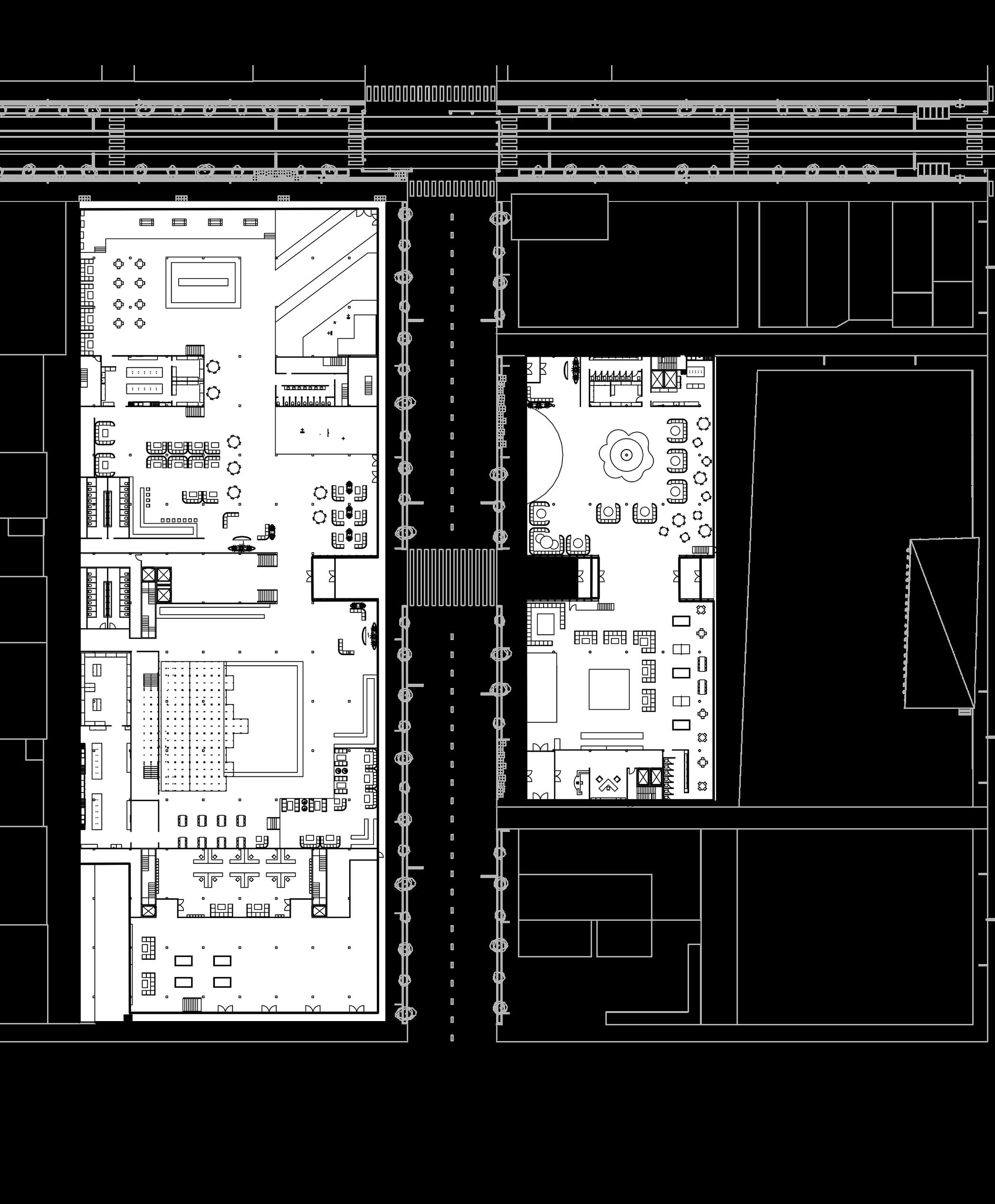 for possible events that can be hosted. The stage can be placed in two locations, one that provides a farther viewing span for larger events and another that gives a closer view to the stage for more intimate events. When laying out the site, the venue space was placed closer to a less trafficked road to provide back of house entrances and to give more room for public amenities on the 3 other sides of the site. A large outdoor space is provided to bring the public into the site and to lead them up the ramp to the outdoor terrace that gives views to the Kansas City skyline.