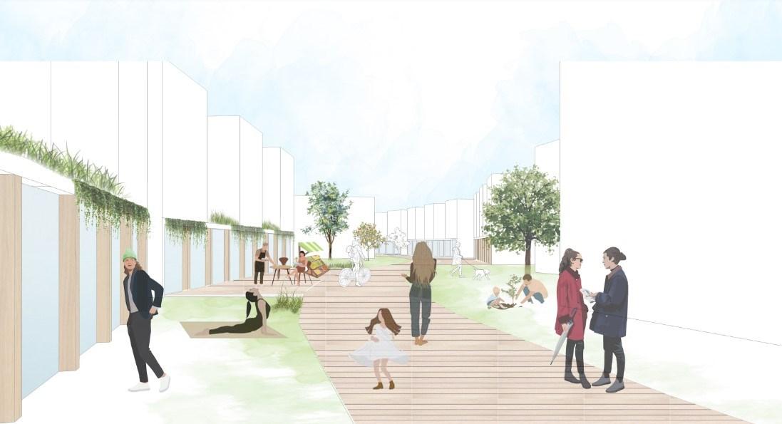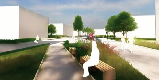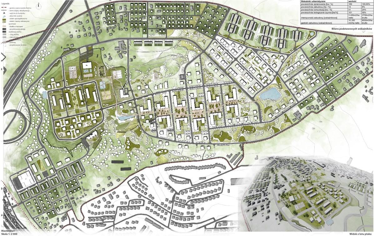 Głównym założeniem tego projektu było stworzenie atrakcyjnej przestrzeni do życia w częściowo zdegradowanym terenie kopalni na obrzeżach Krakowa (Zesławice), składającej się z różnego rodzaju budynków (jednorodzinnych, szeregowych lub wielorodzinnych), które wtapiają się w otoczenie, spore różnice w wysokości terenu oraz już istniejącą zabudowę, tworząc harmonijną całość. Projekt obejmuje również rozwiązania błękitno-zielonej architektury, zbiorniki retencyjne, uporządkowaną zieleń oraz stworzenie ciągów pieszych łączących lokalne centra wraz z terenami rekreacyjnymi Praca w zespole 8-os