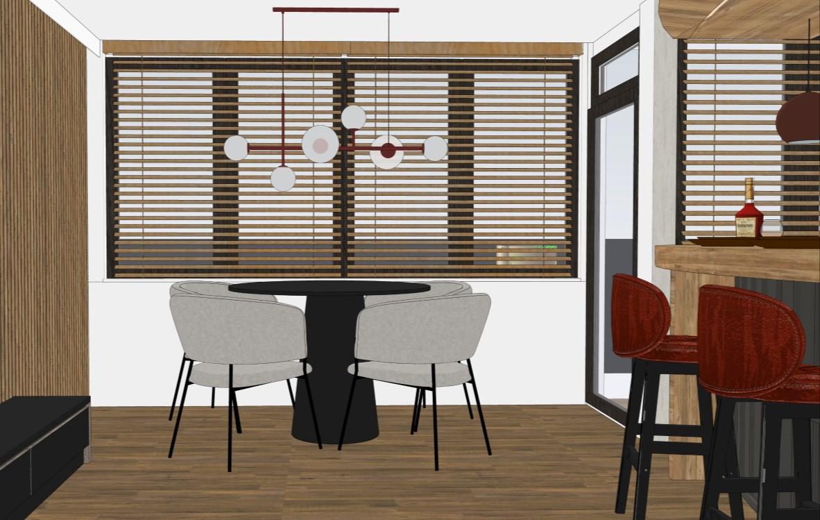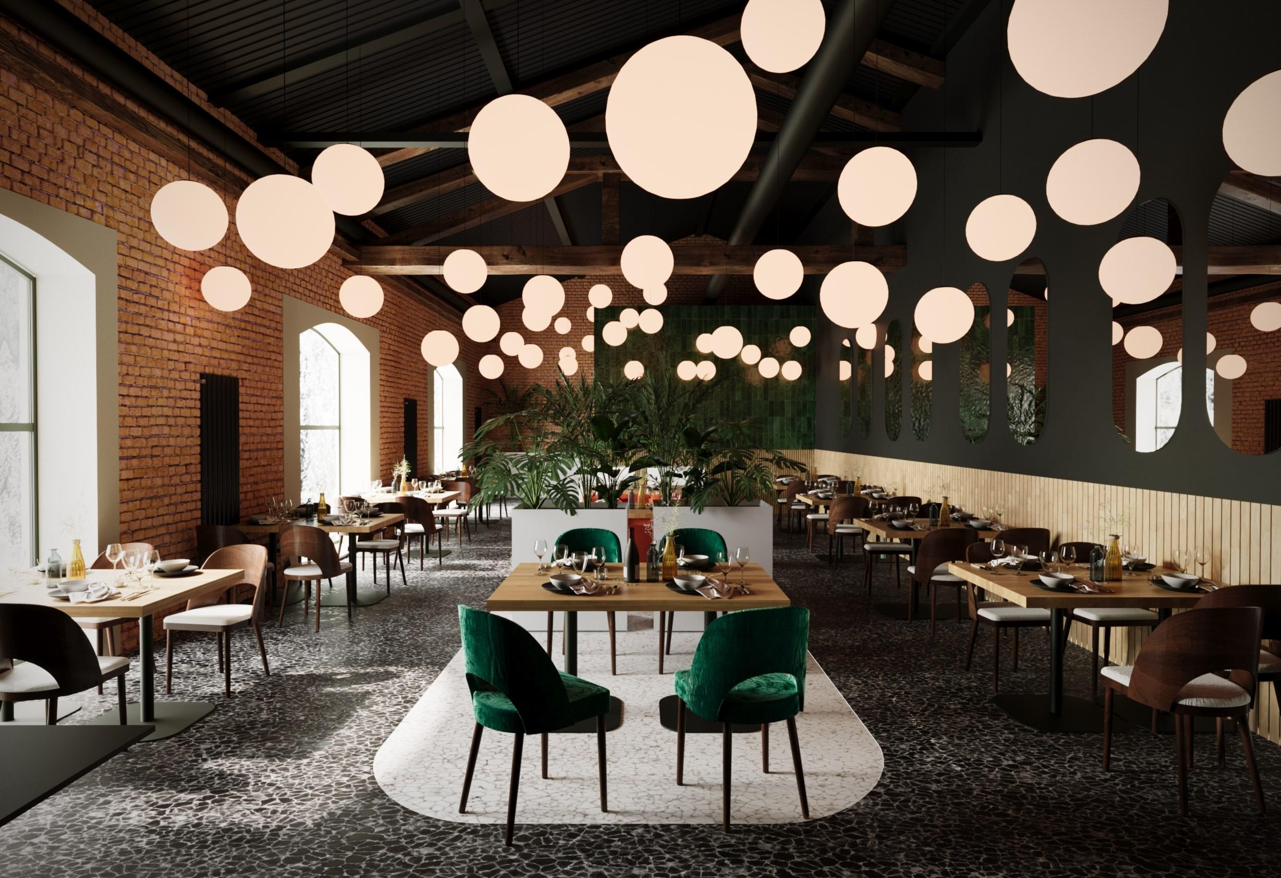 Jedną z wizualizacji wykonanych podczas szkolenia było odwzorowanie fotografii restauracji z Łodzi. W ramach kursu nauczyłam się jak modelować, tworzyć materiały od podstaw (m in welur, drewno, płytki ceramiczne, cegła), wprowadzać oświetlenie sztuczne i naturalne, jak optymalizować sceny oraz elementów kompozycji, kadru i postprodukcji.