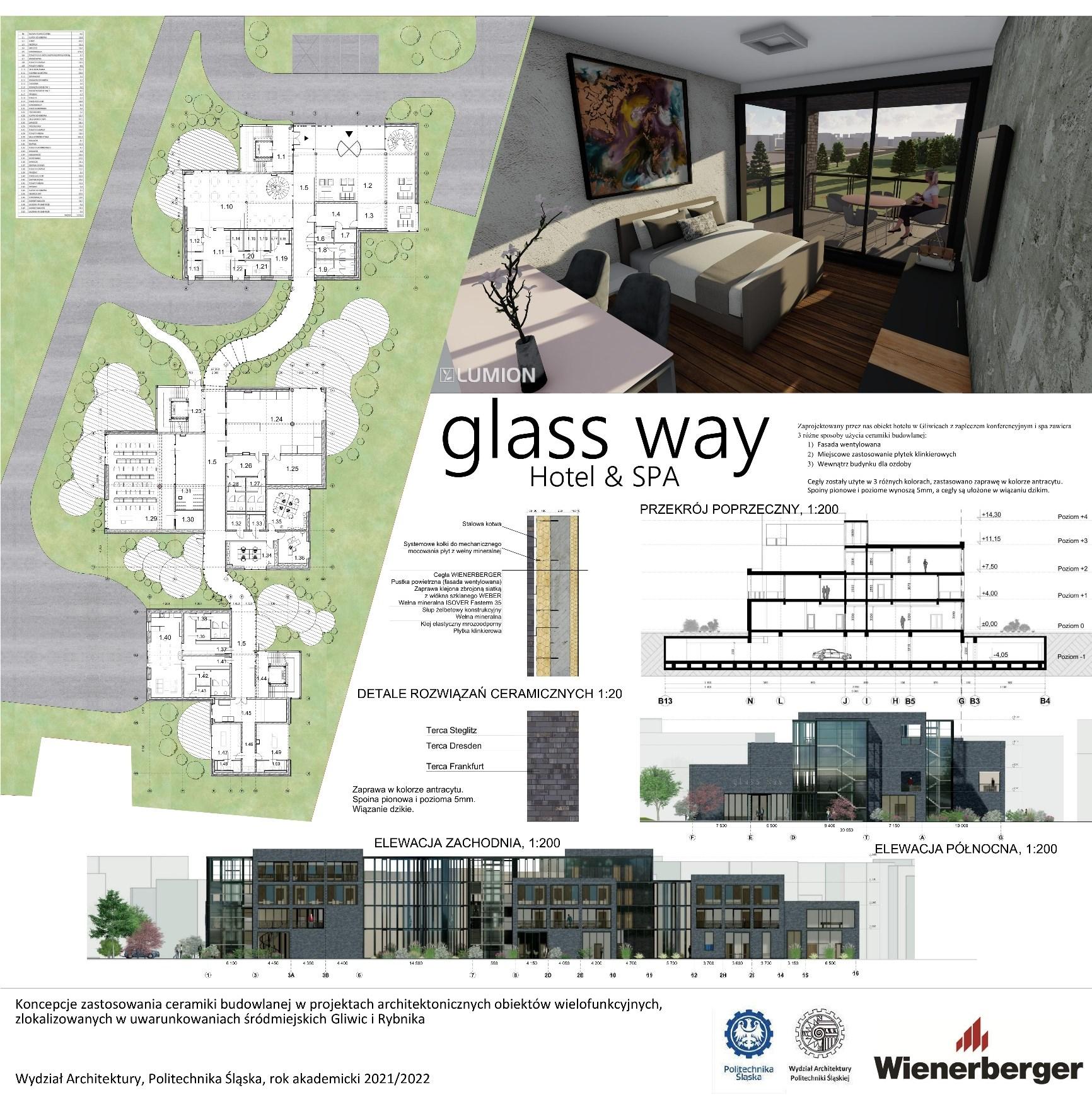 Główną ideą projektu było dopasowanie do długiej oraz wąskiej działki budowlanej poprzez zaprojektowanie konstrukcji złożonej z nieregularnie rozmieszczonych sześciennych modułów, połączonych pełnym naturalnego światła, długim i zaokrąglonym szklanym korytarzem Elewacja budynków wykonana jest z trzech różnych rodzajów cegieł. Budynek składa się z 30 pokoi hotelowych, sali konferencyjnej, restauracji, SPA & WELLNESS. Lokalizacja to śródmieście Gliwic, blisko centrum, więc byłaby to dobra opcja dla podróży służbowych, ale także dla osób, które chcą wziąć udział w niektórych wydarzeniach organizowanych na stadionie Arena znajdującym się po drugiej stronie ulicy. Hotel znajduje się również blisko terenów rekreacyjnych parku. Projekt realizowany w zespole 2 os. (udział 50 %)