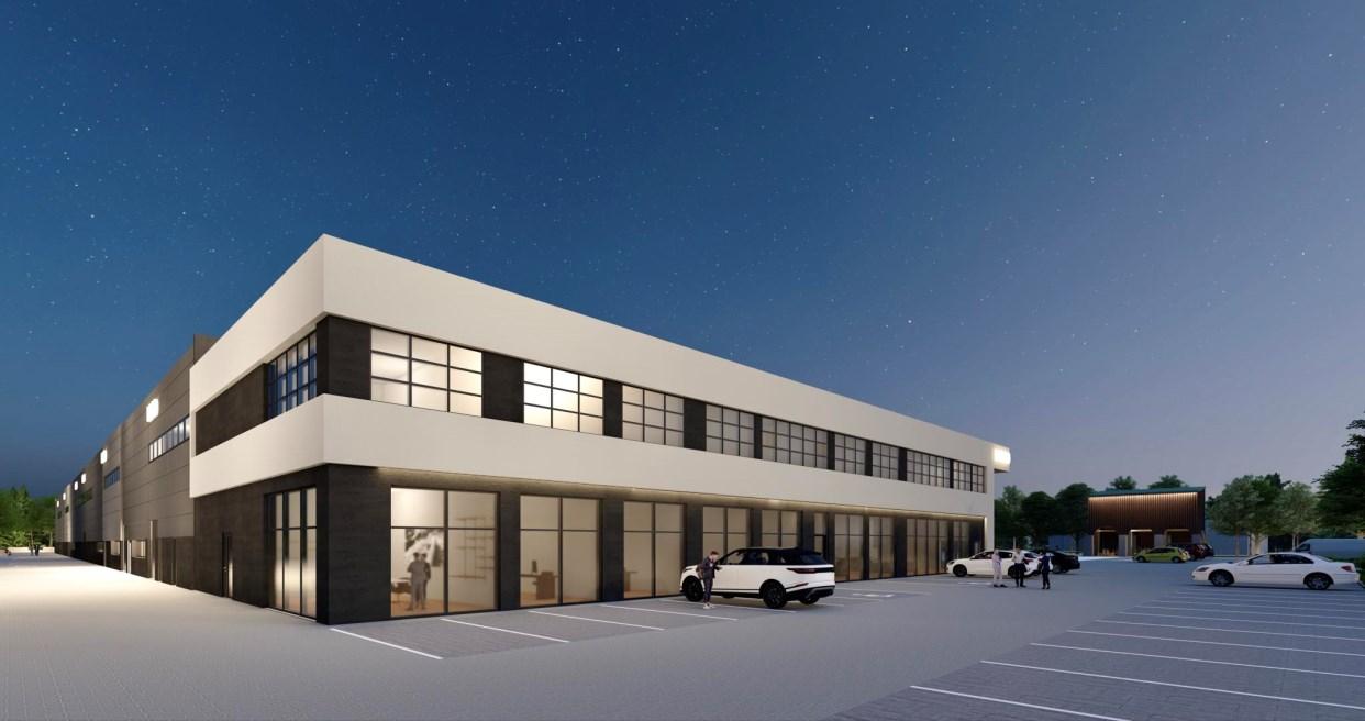 1. PROJEKT ORAZ WIZUALIZACJE NOCNE HALI Z BIUROWCEM
