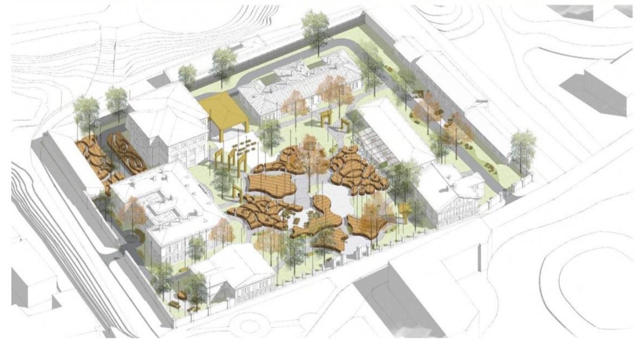 Koncepcja zagospodarowania terenu przy Pałacu Potockich w Iwano-Frankiwsku zakłada stworzenie zróżnicowanej przestrzeni o symbolicznym znaczeniu Zaprojektowano labirynty w zbożu, bramy wykonane ze słomy, naprowadzające na wejście do poszczególnych części pałacu i imitujące te oryginalne, modułowe meble miejskie wykonane ze słomy, scenę symbolizującą dom, czy lampy z motywem ptaków jako dążenia do wolności Ciekawym elementem przestrzeni jest również mur z siatki do wyszywania z włóczki by zaangażować przechodniów do wspólnych interakcji.